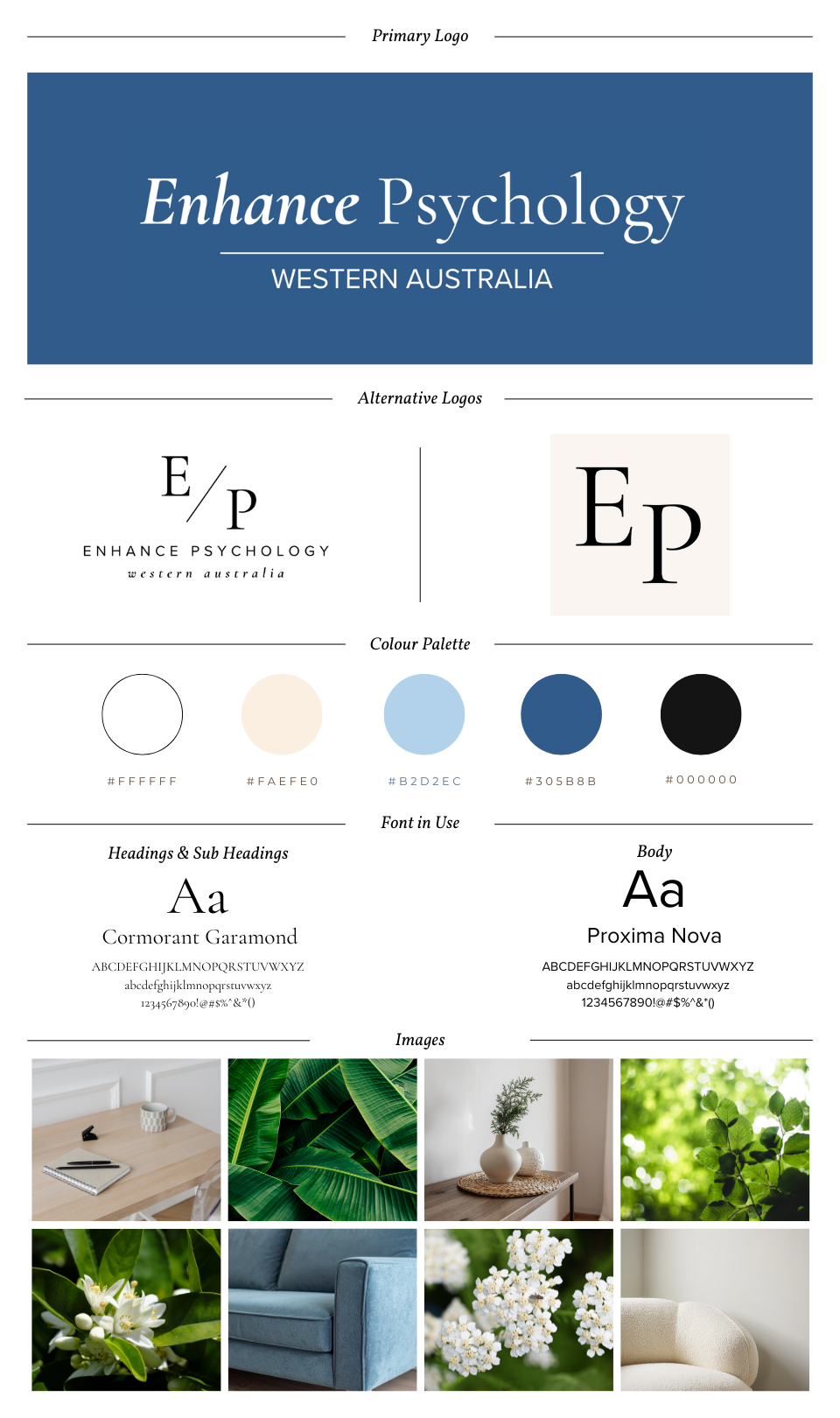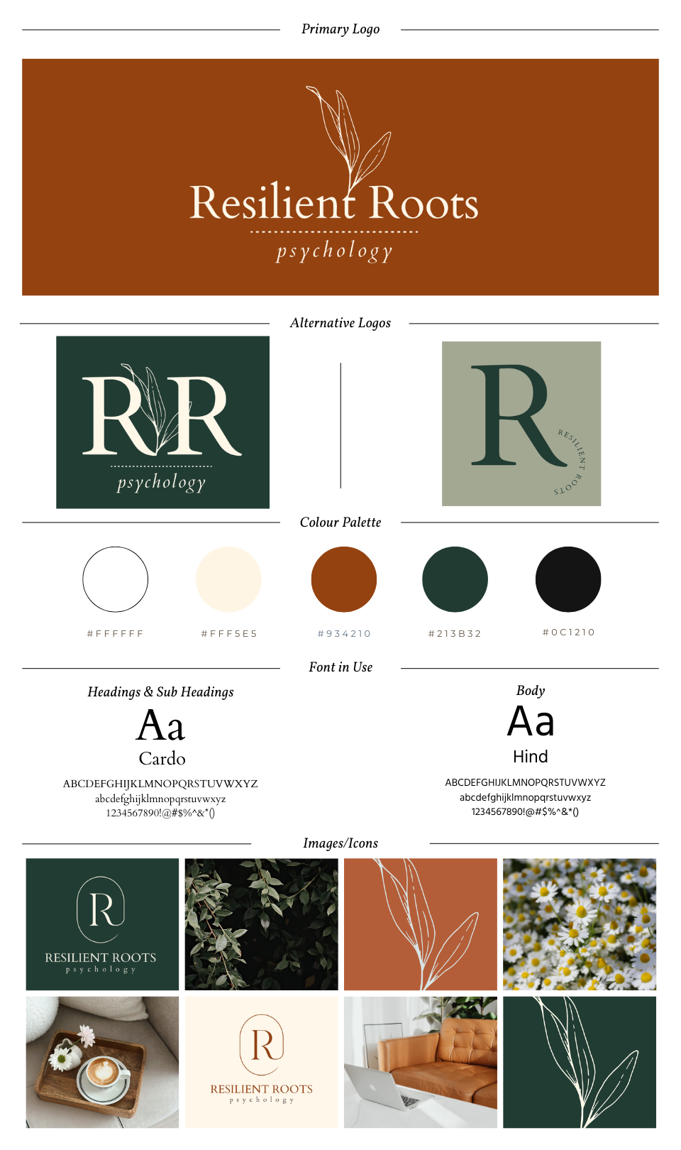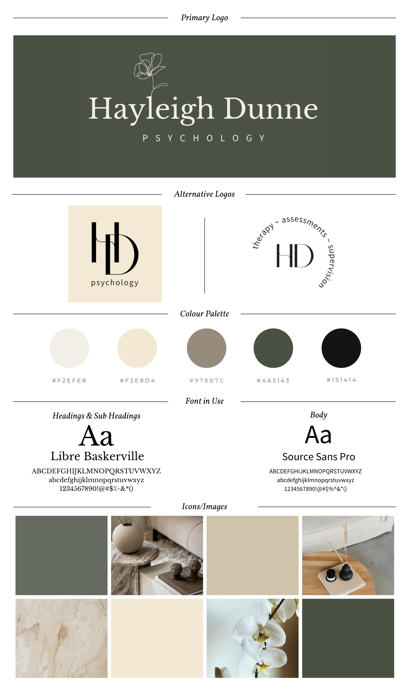 A visual reference guide showing how your brand fits together, making it easy to keep your branding consistent across your website, social media, print and marketing – including: