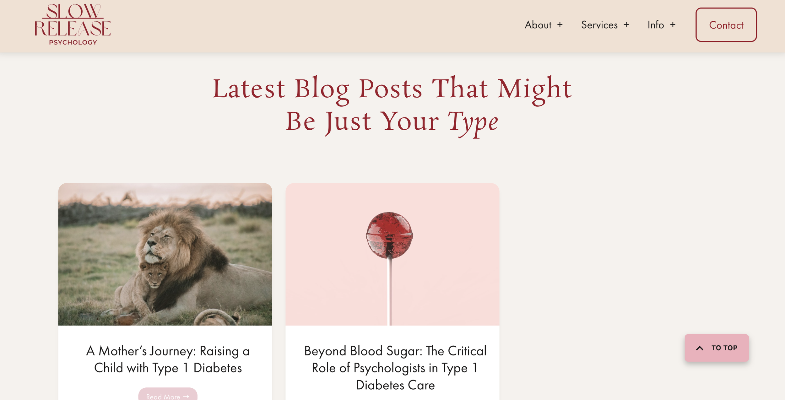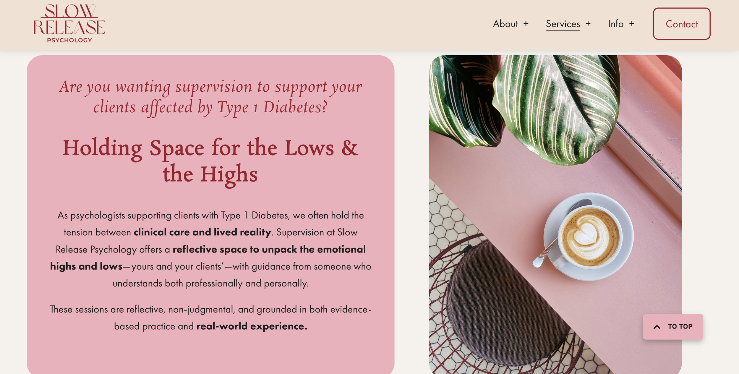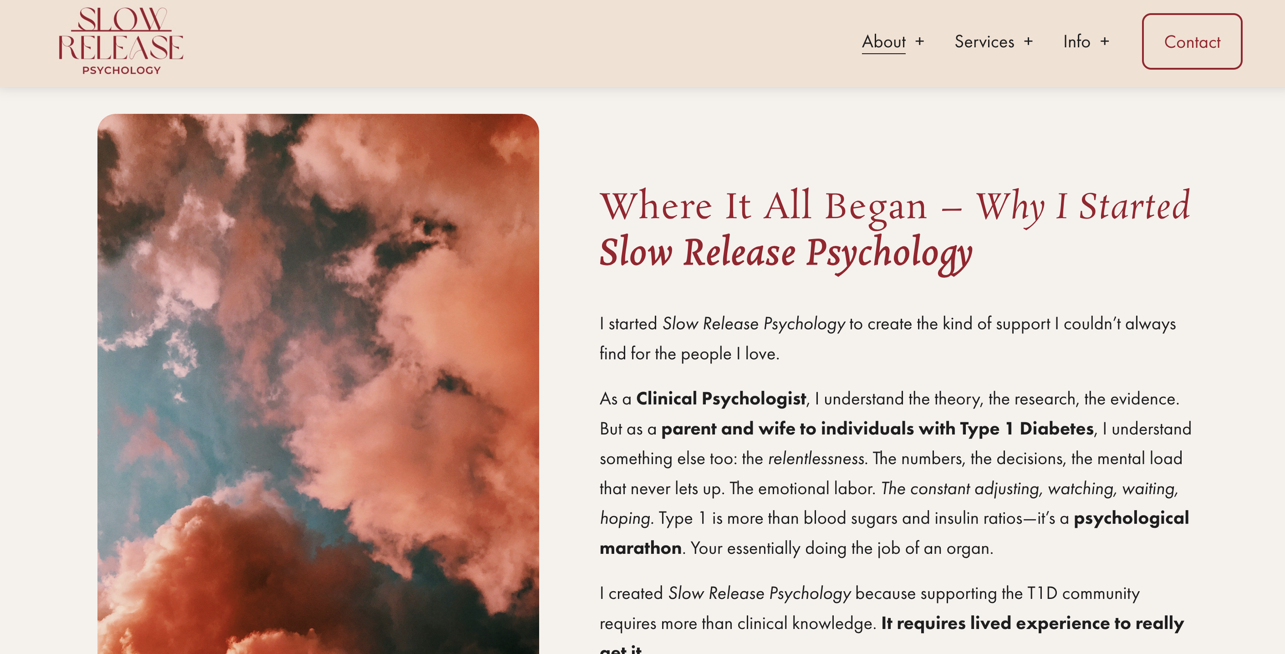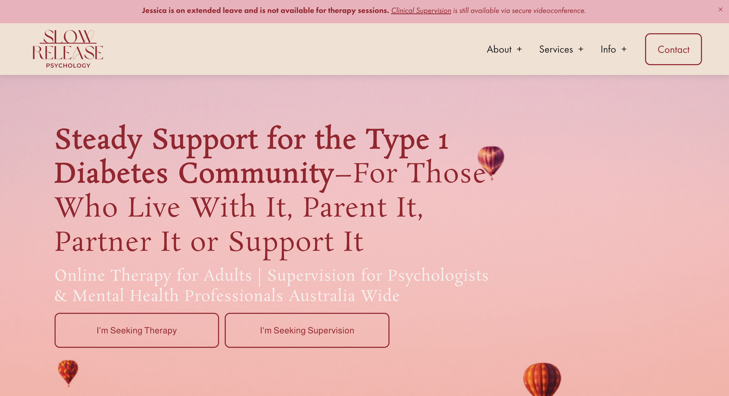 Online psychology practice offering therapy for adults with Type 1 Diabetes (and partners, parents of children with Type 1, and caregivers) and clinical supervision to early career psychologists in private practice and mental health professionals supporting people affected by Type 1 Diabetes.