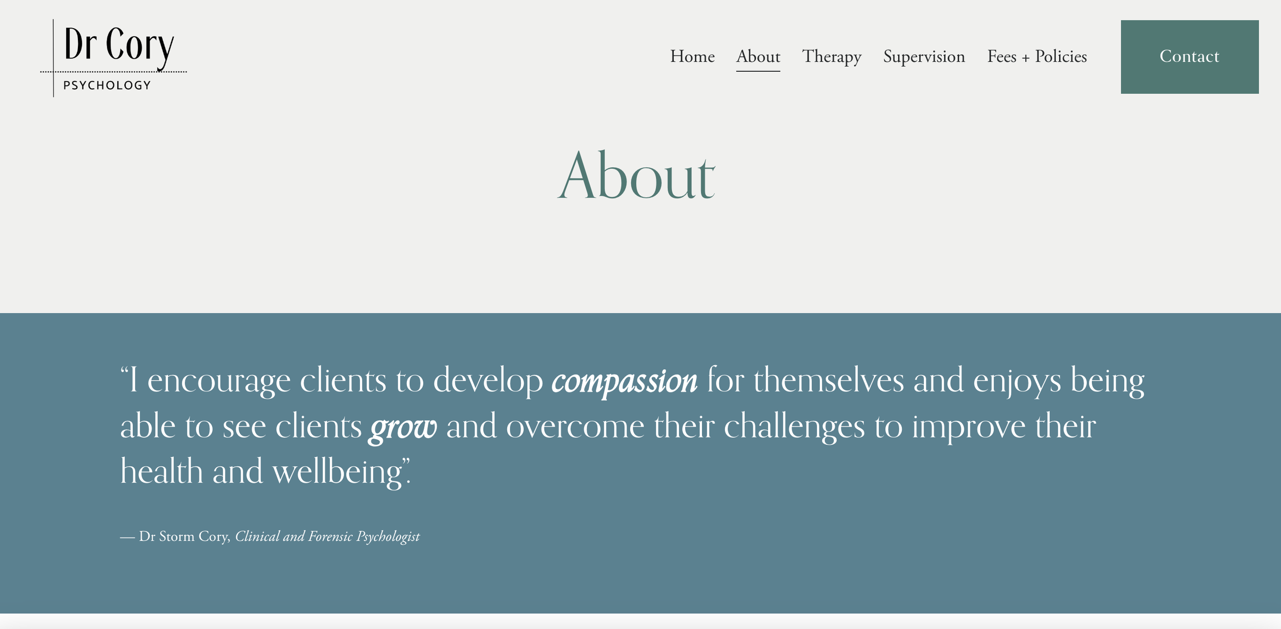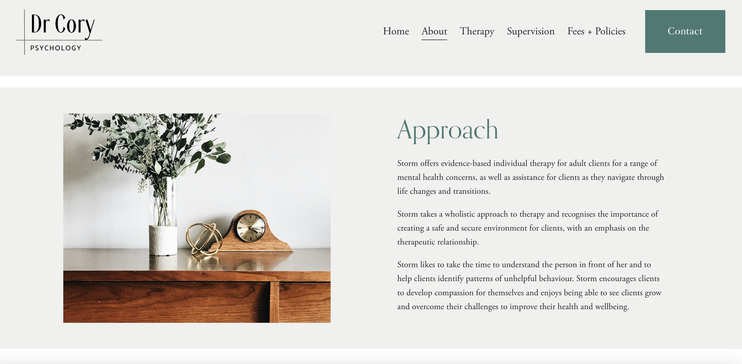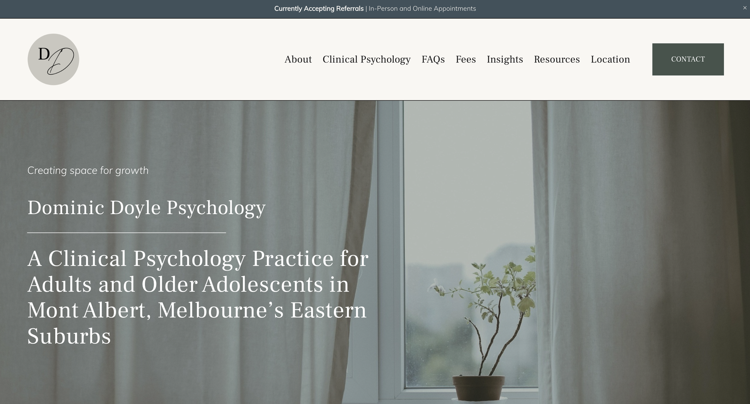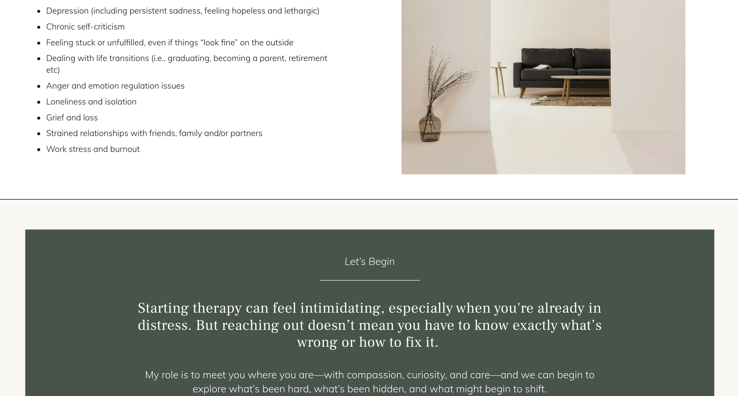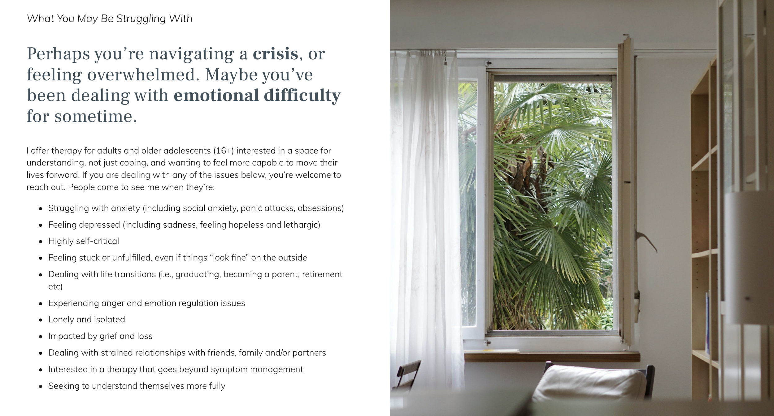 Brief: Simple, minimal, clean, and professional website reflecting clinician’s approach and style.