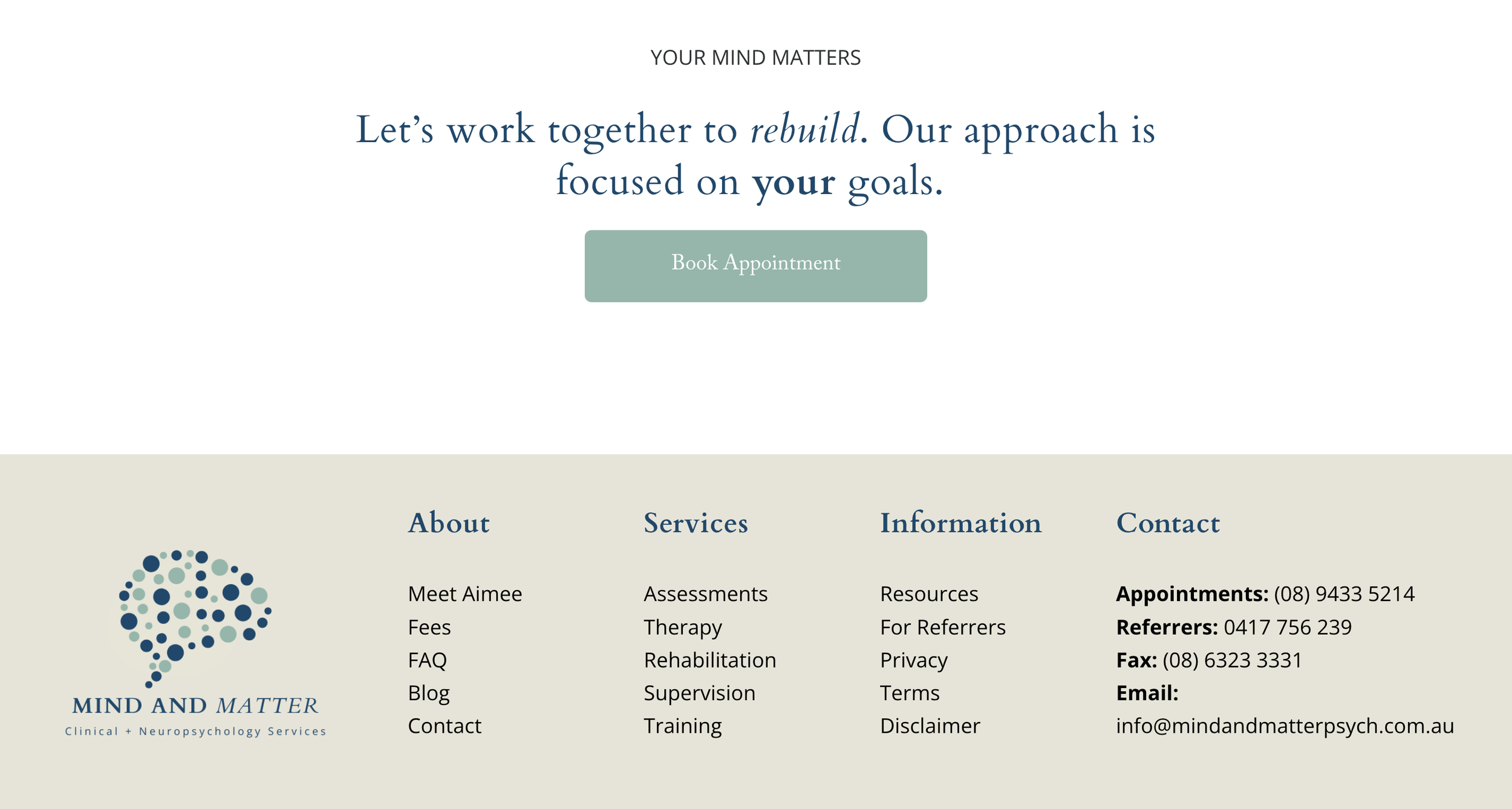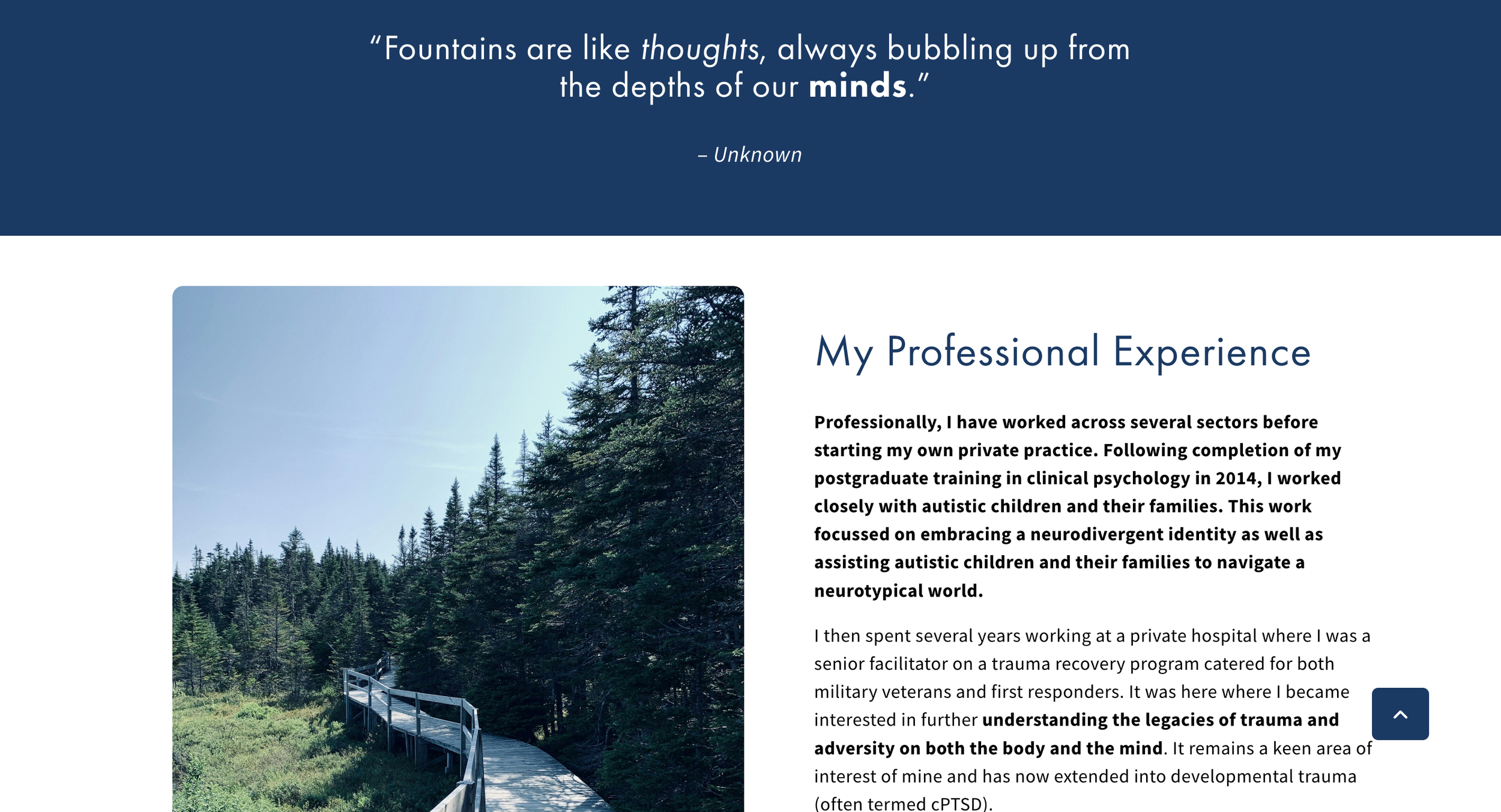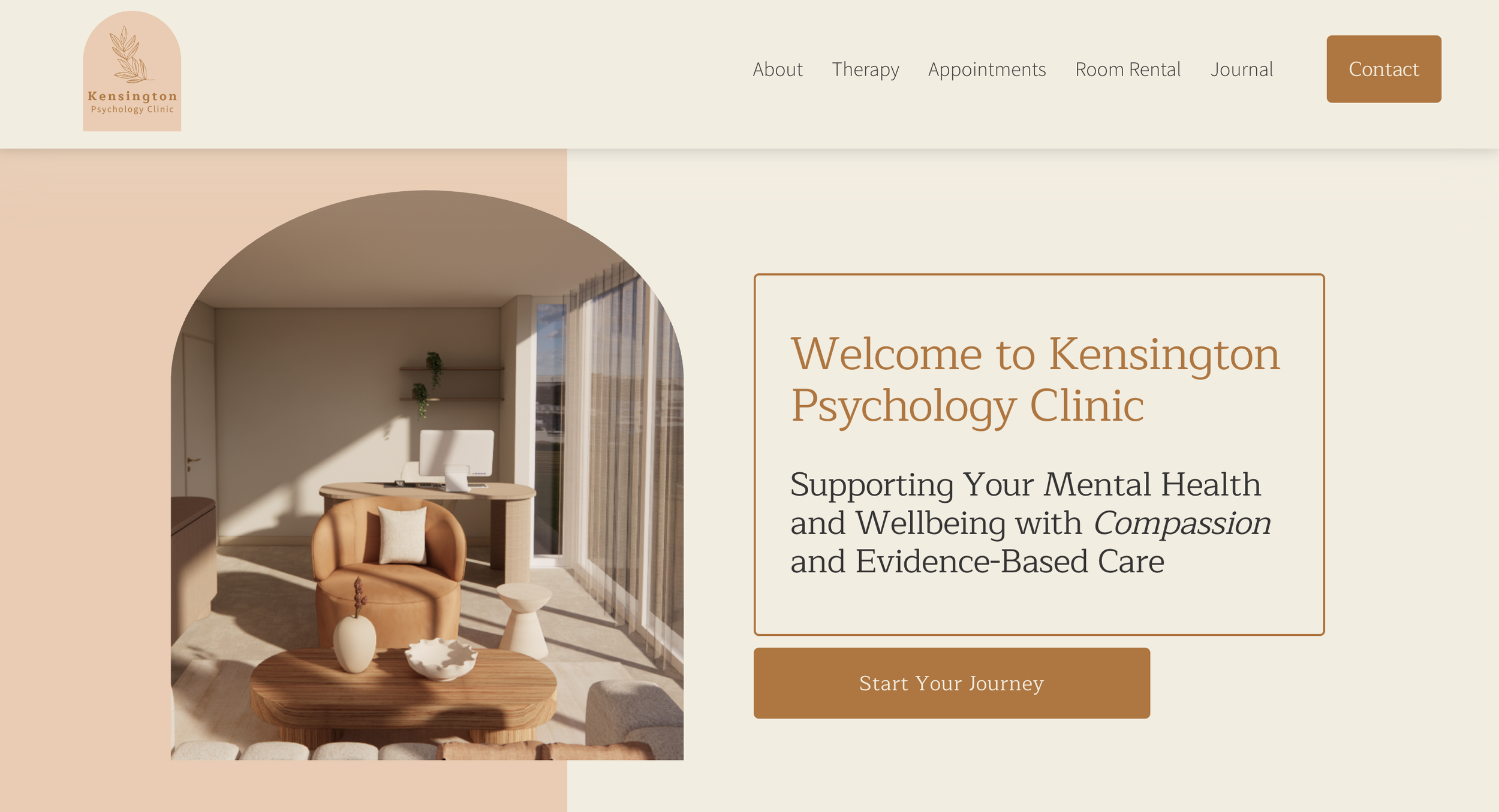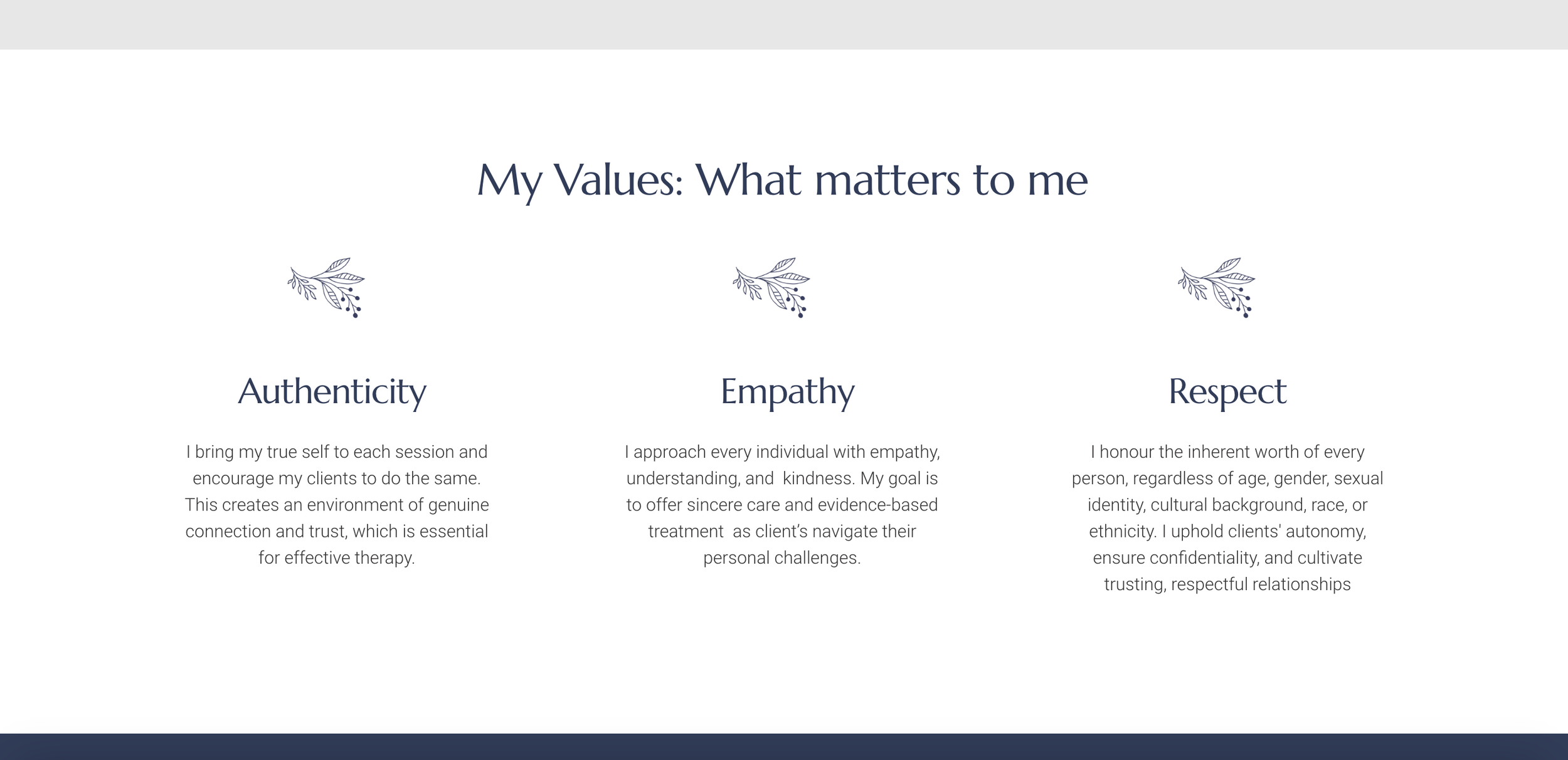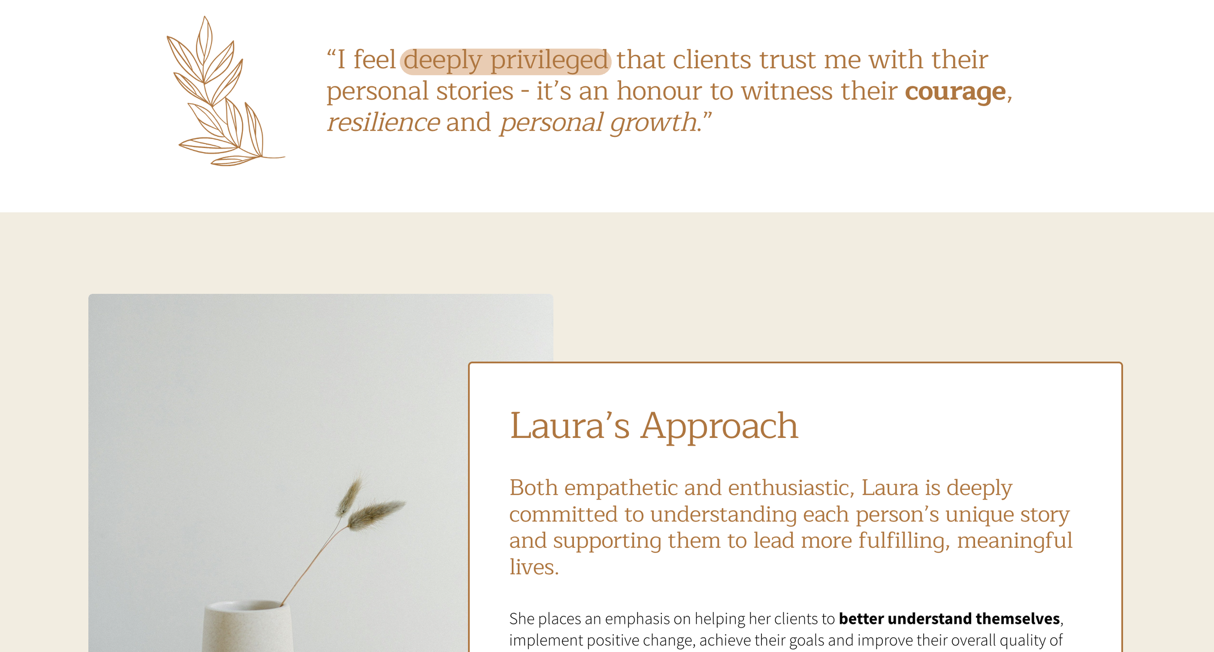 Brief: Simple, minimal, clean, and professional website reflecting clinician’s approach and style.