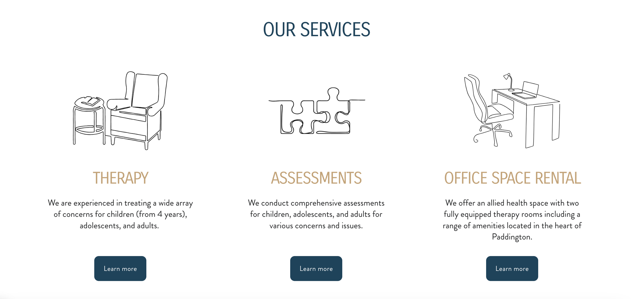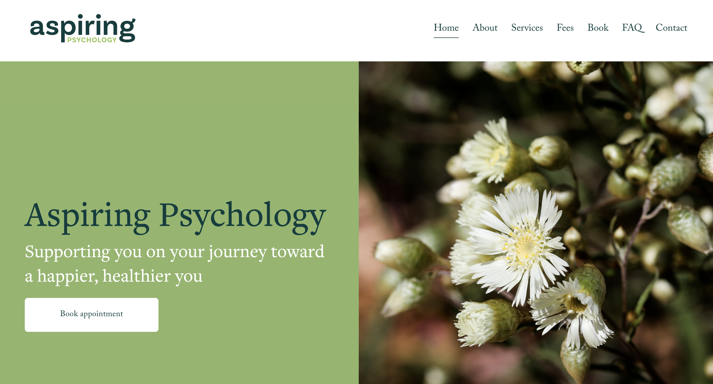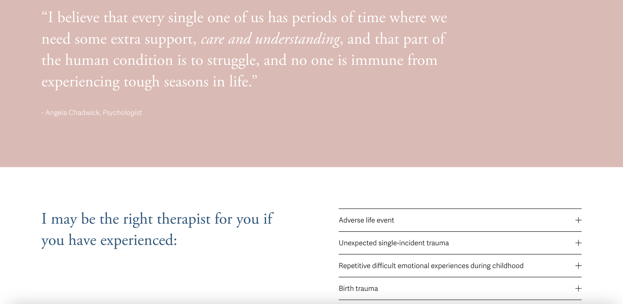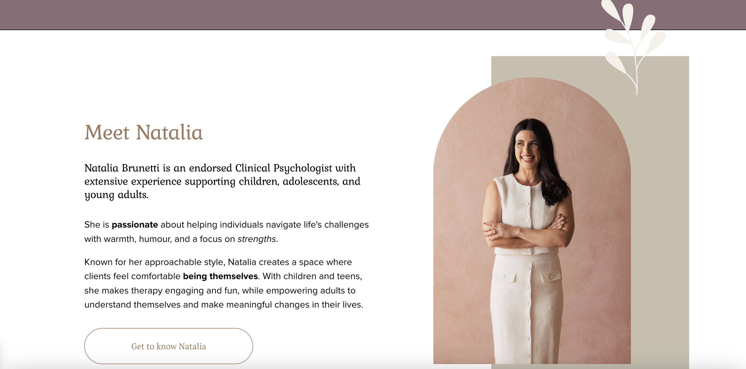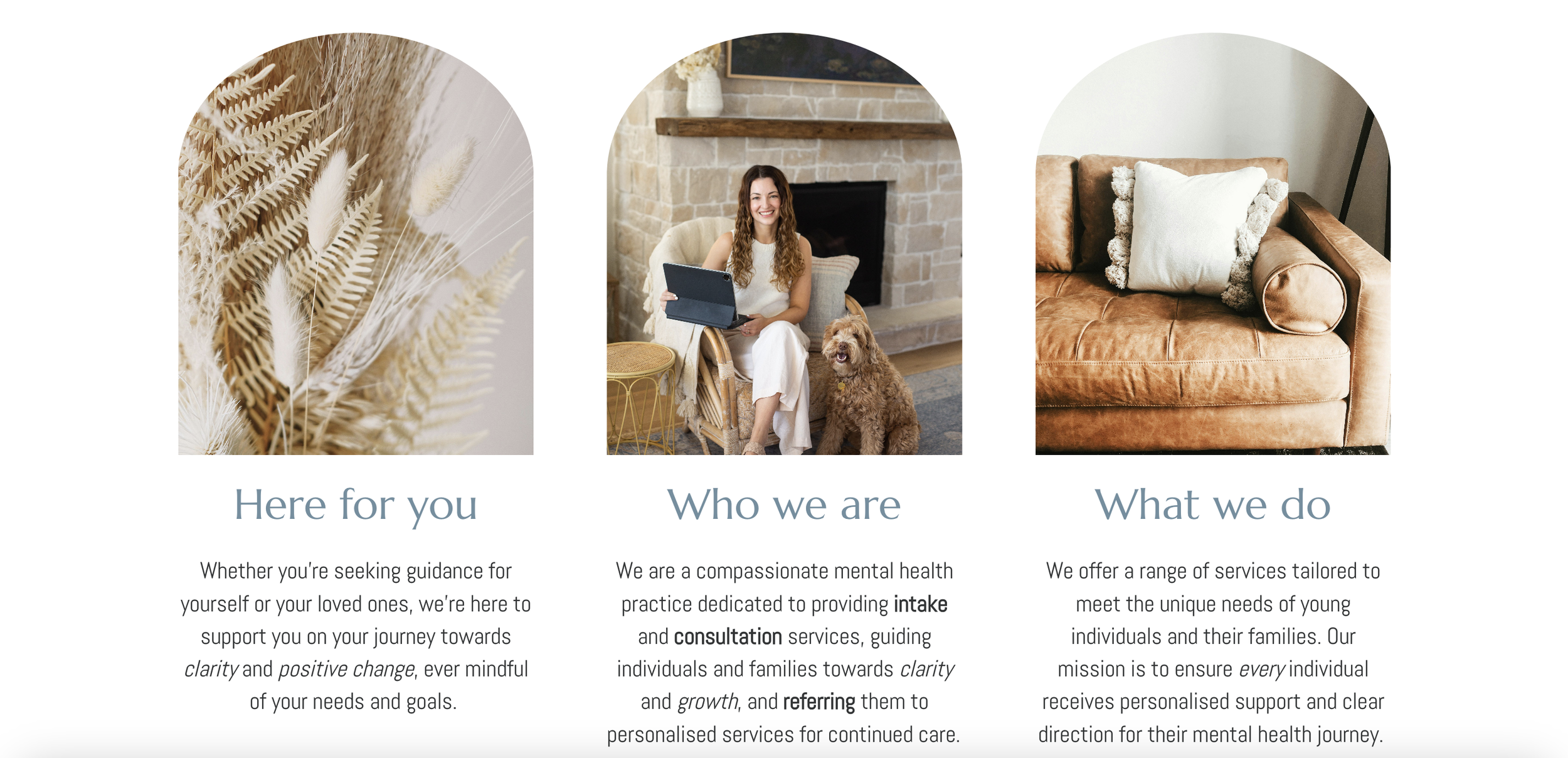 Brief: Simple, minimal, clean, and professional website reflecting clinician’s approach and style.