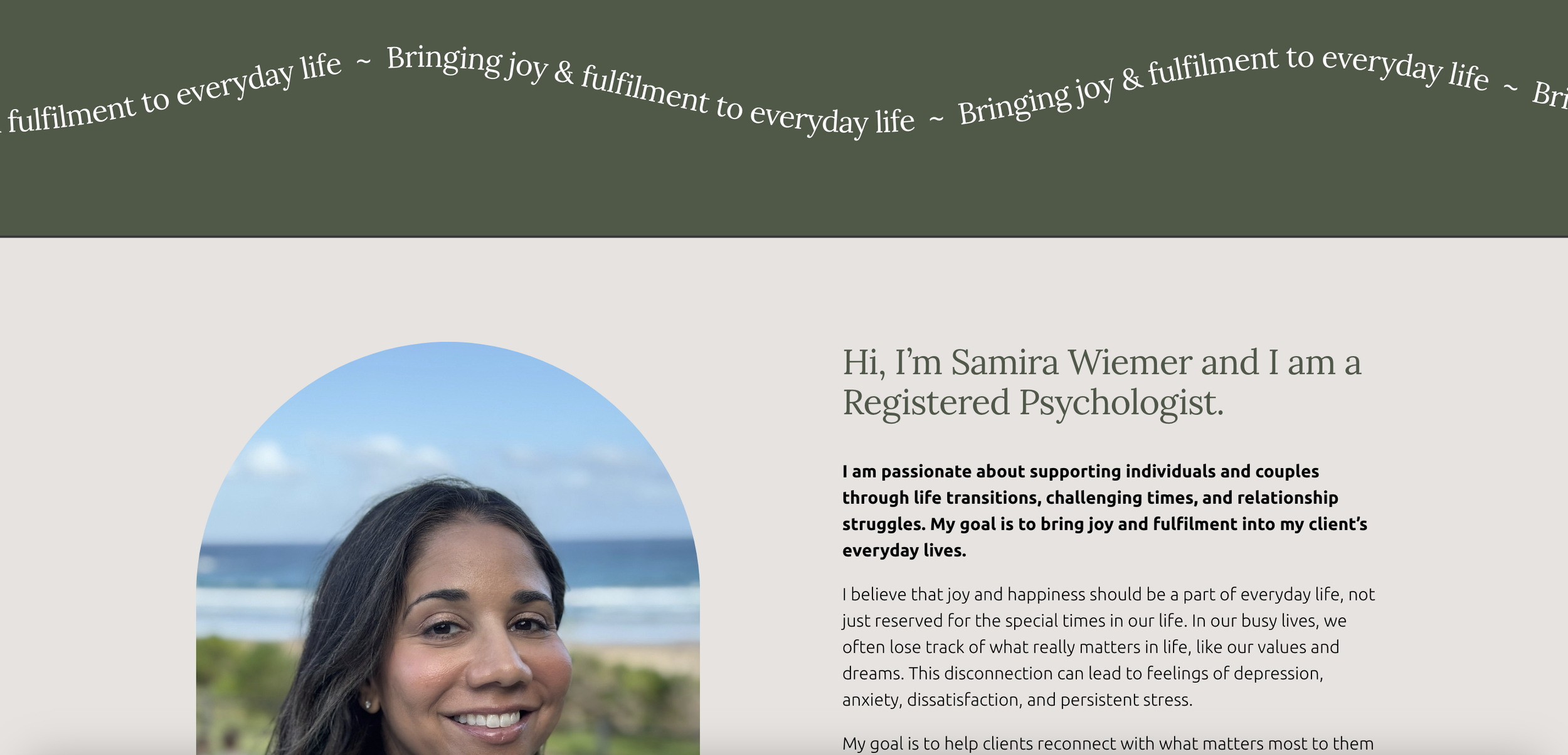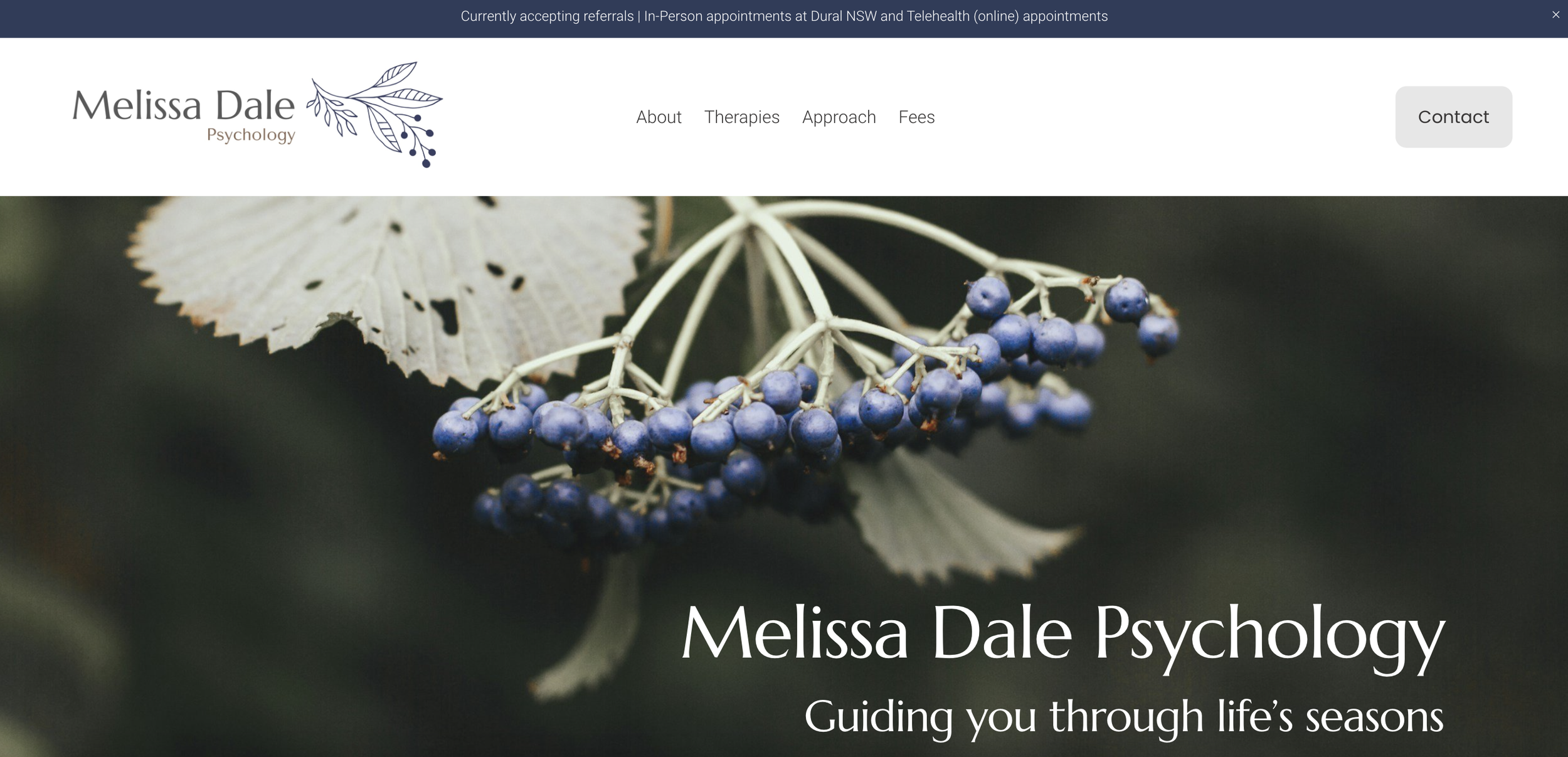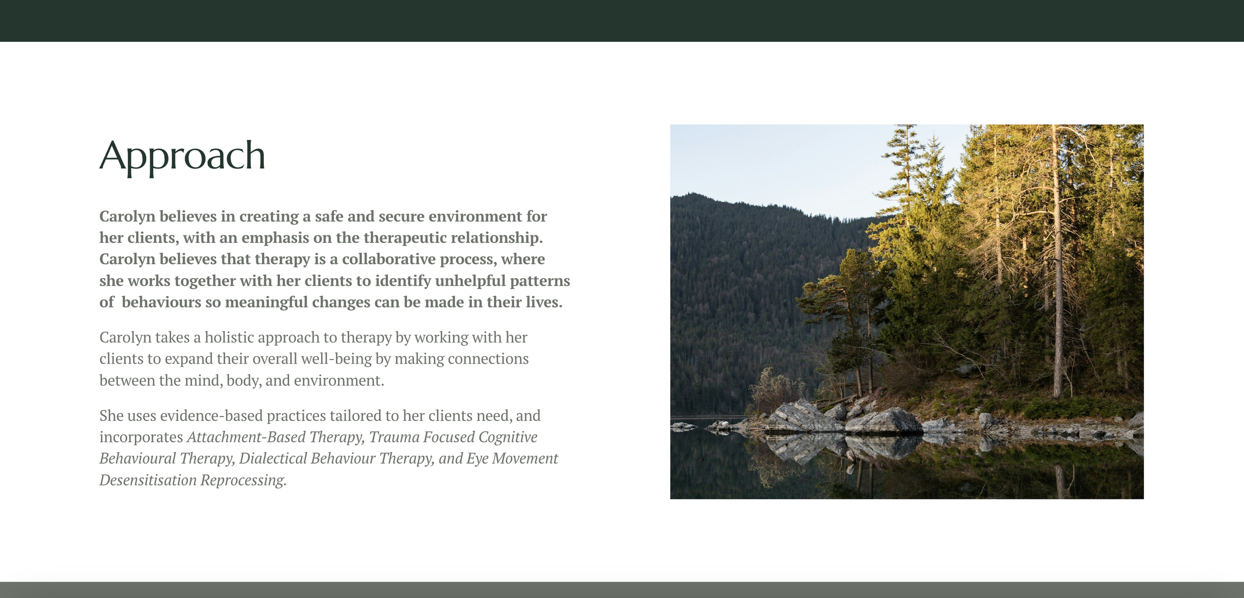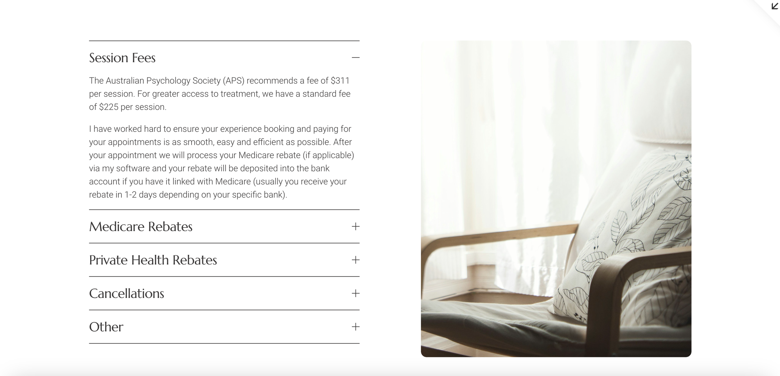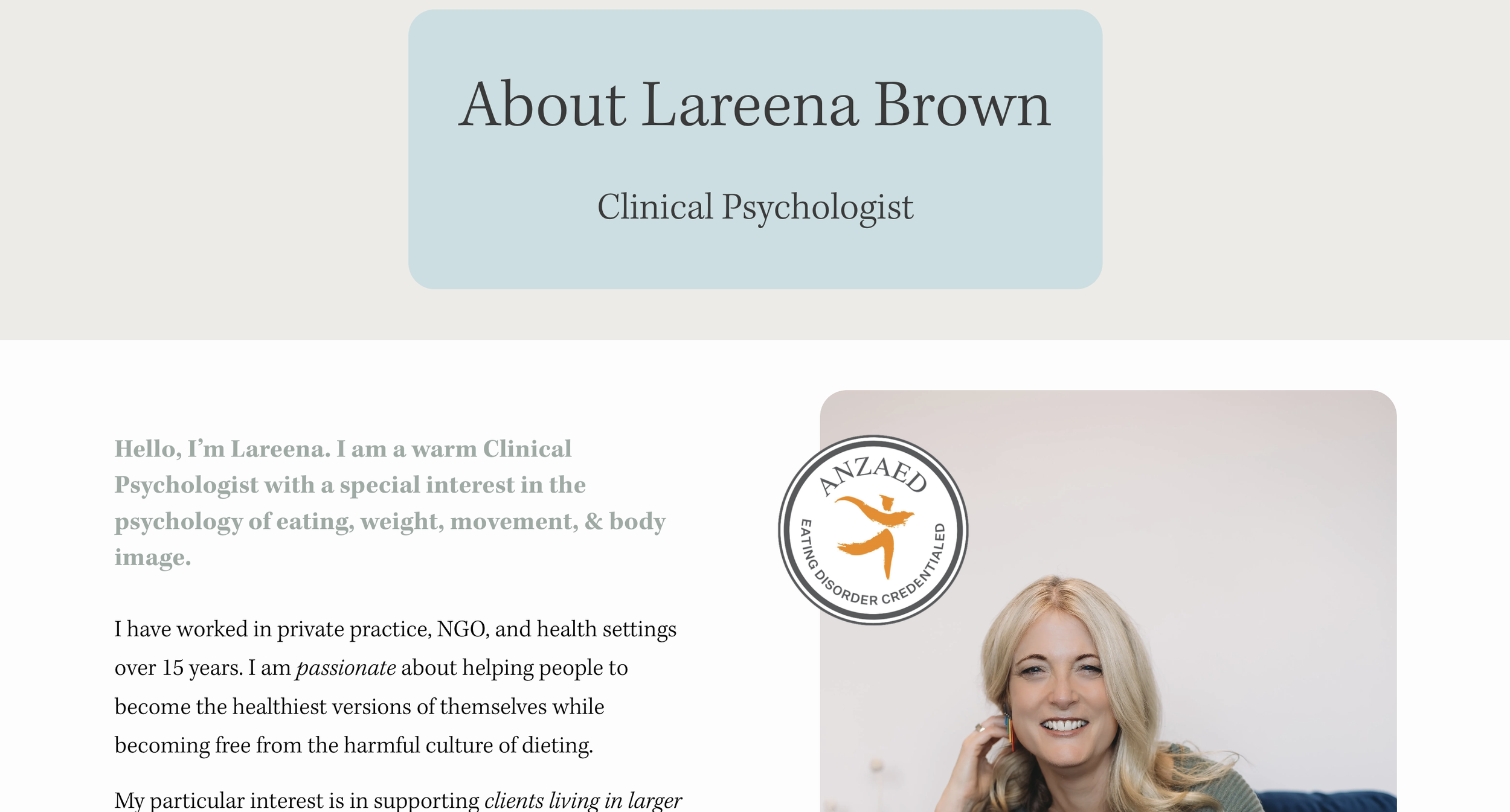 Brief: Simple, minimal, clean, and professional website reflecting clinician’s approach and style.