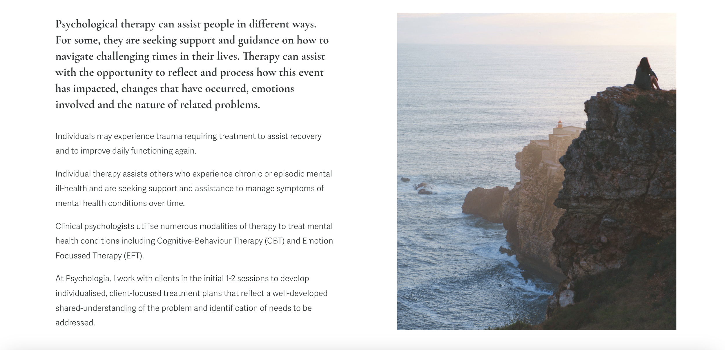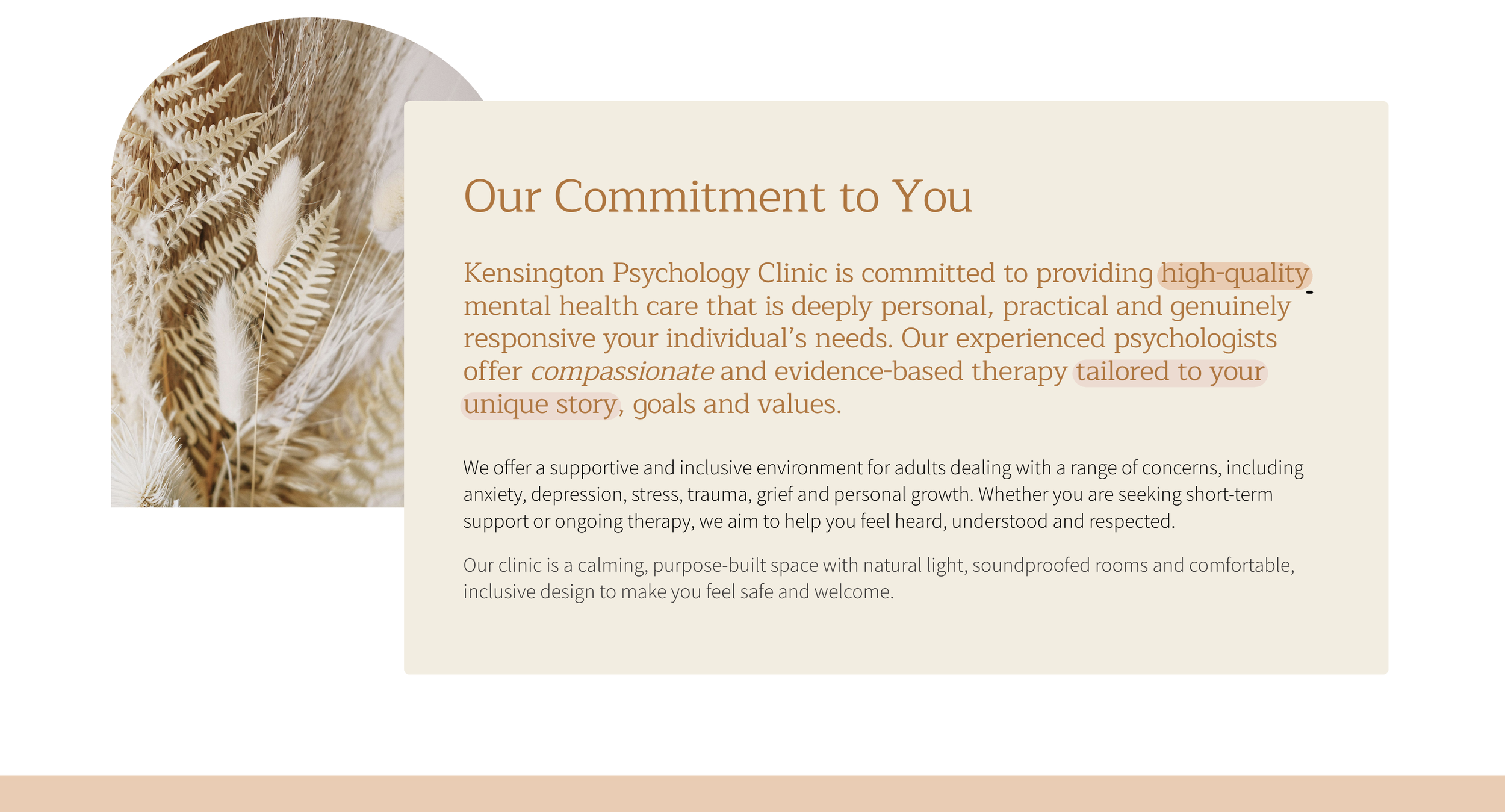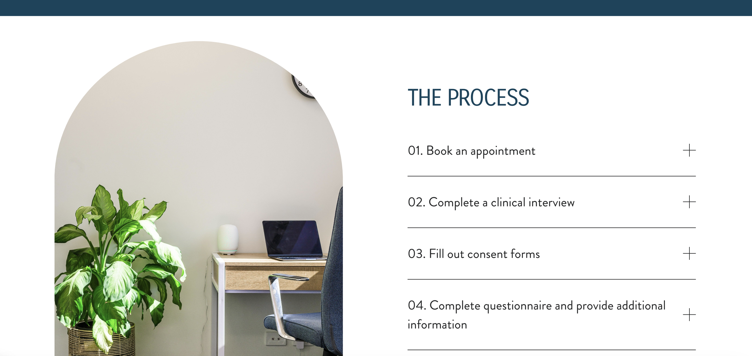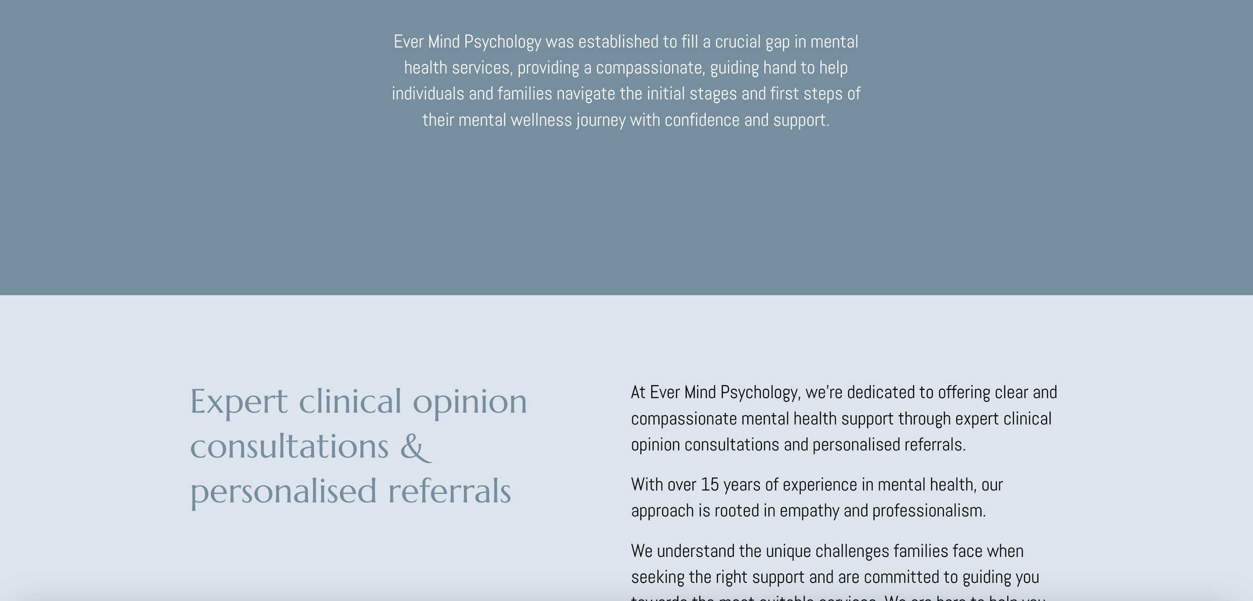 Brief: Simple, minimal, clean, and professional website reflecting clinician’s approach and style.