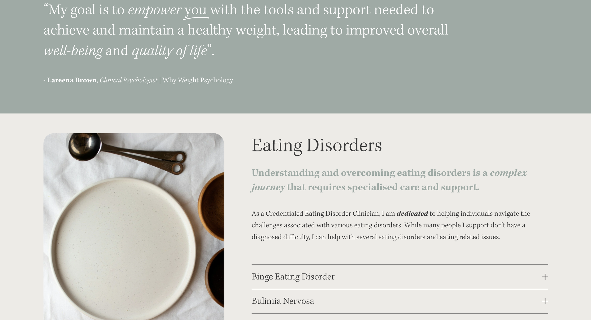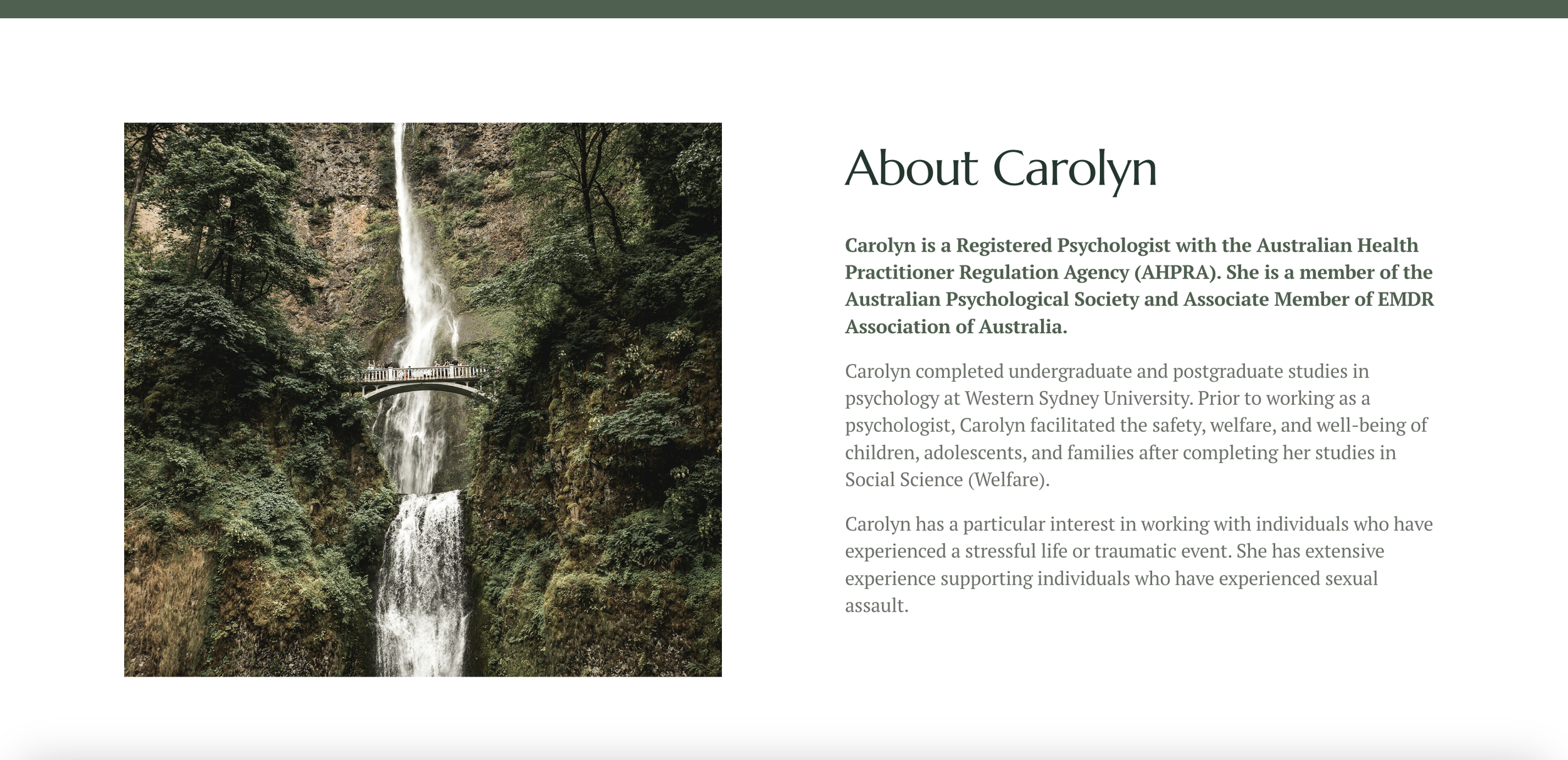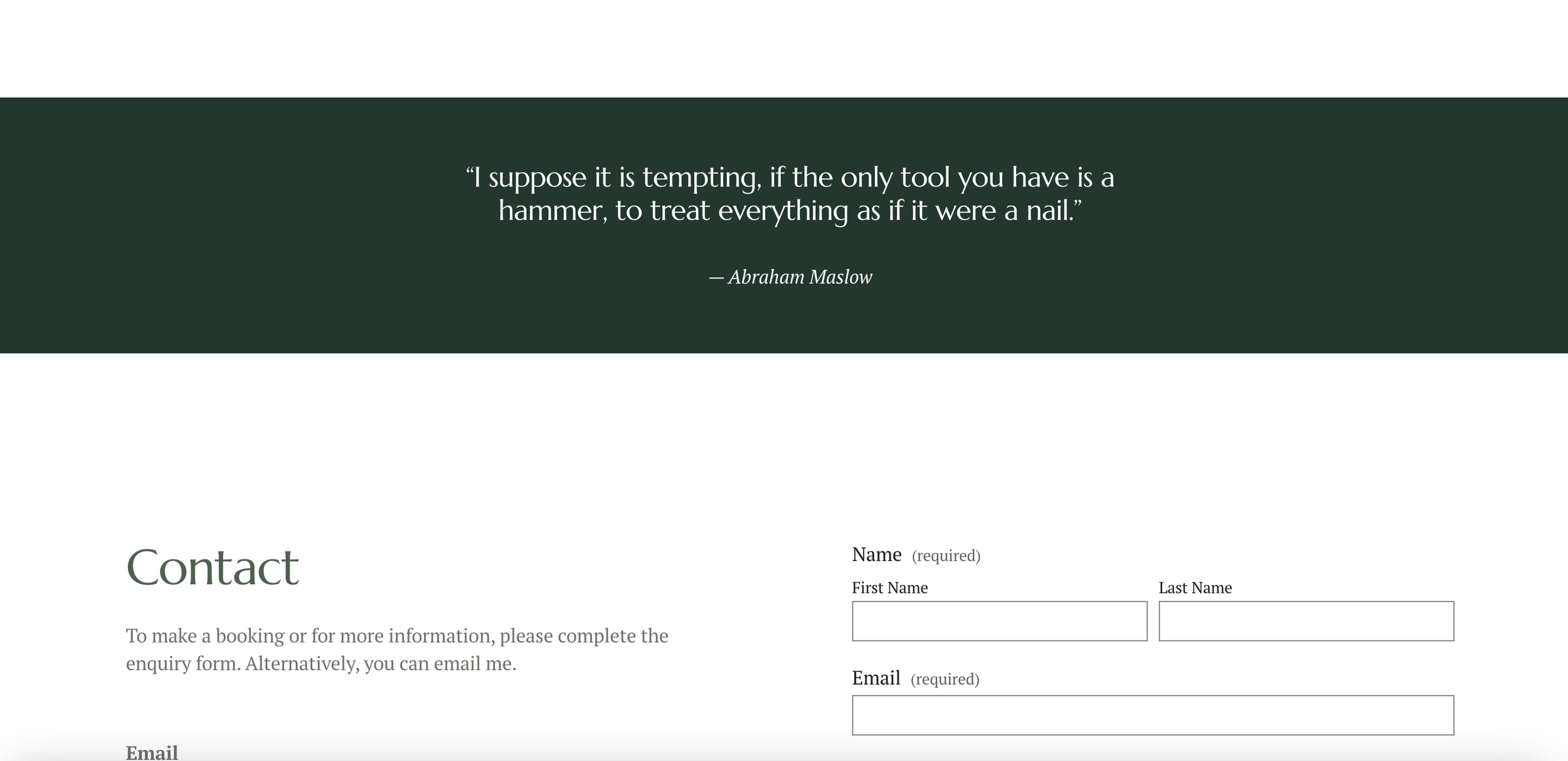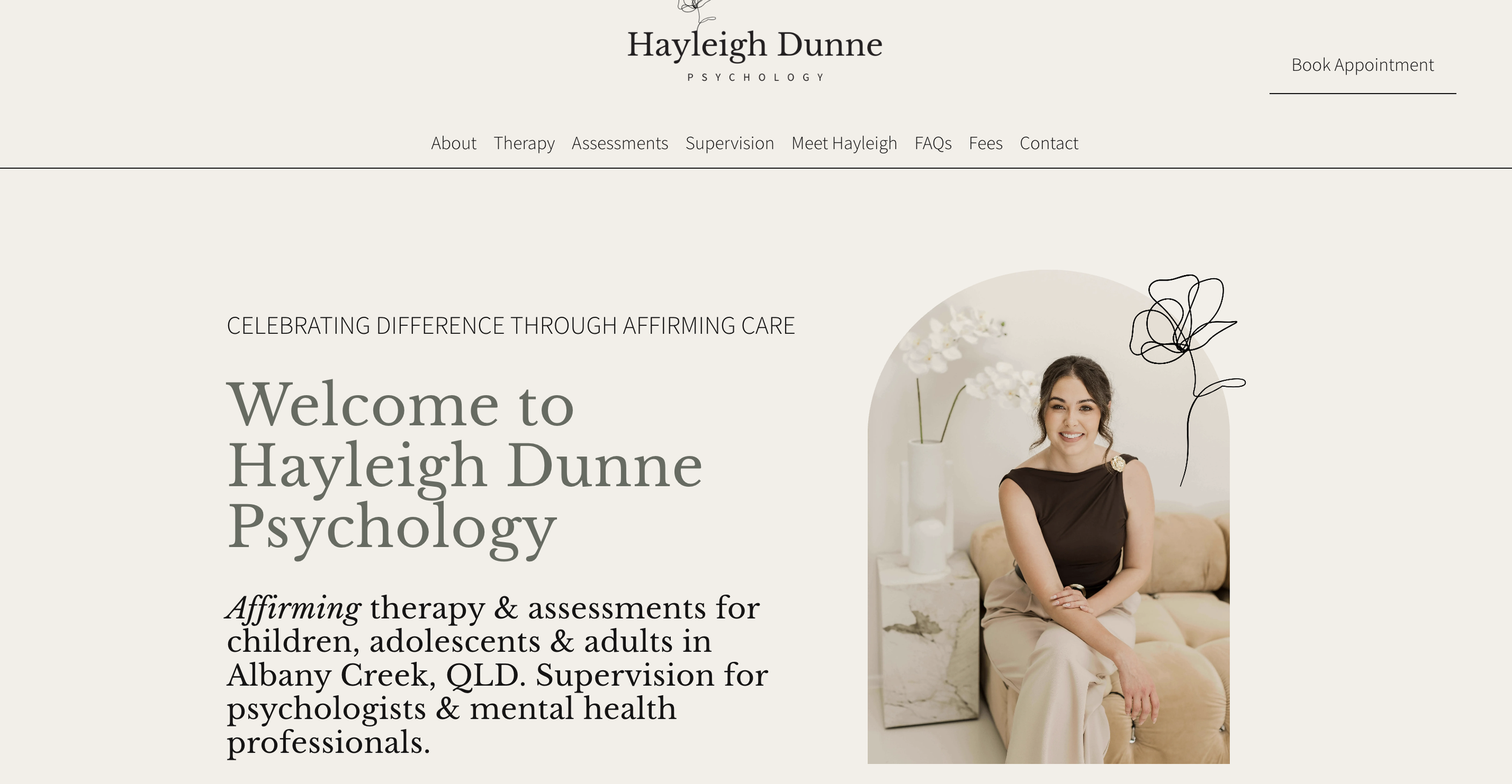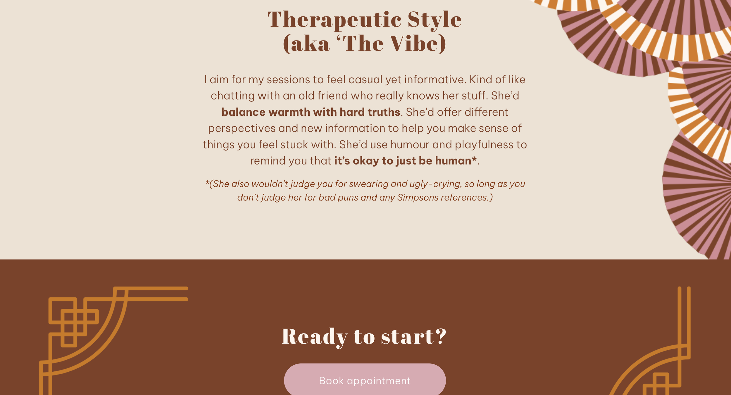 Brief: Simple, minimal, clean, and professional website reflecting clinician’s approach and style.