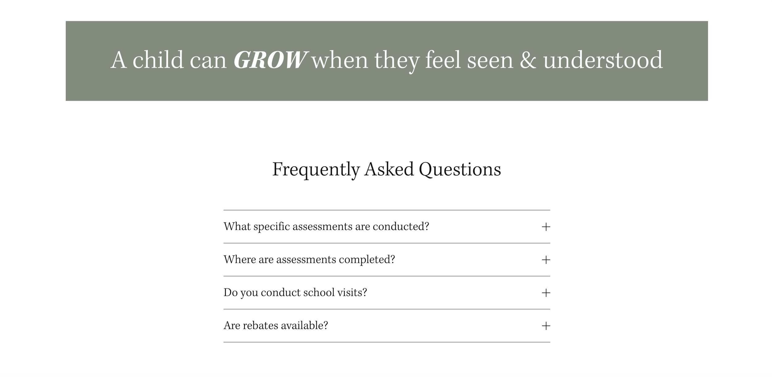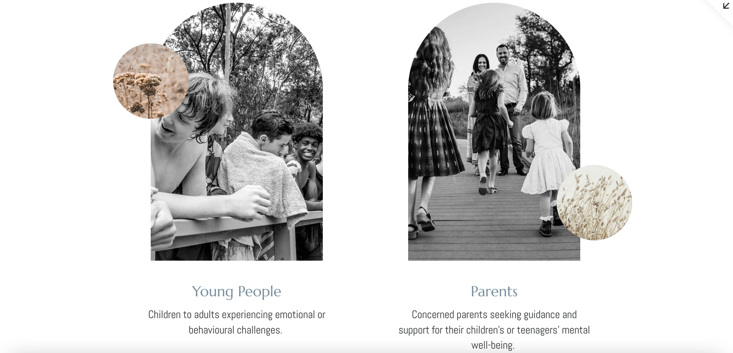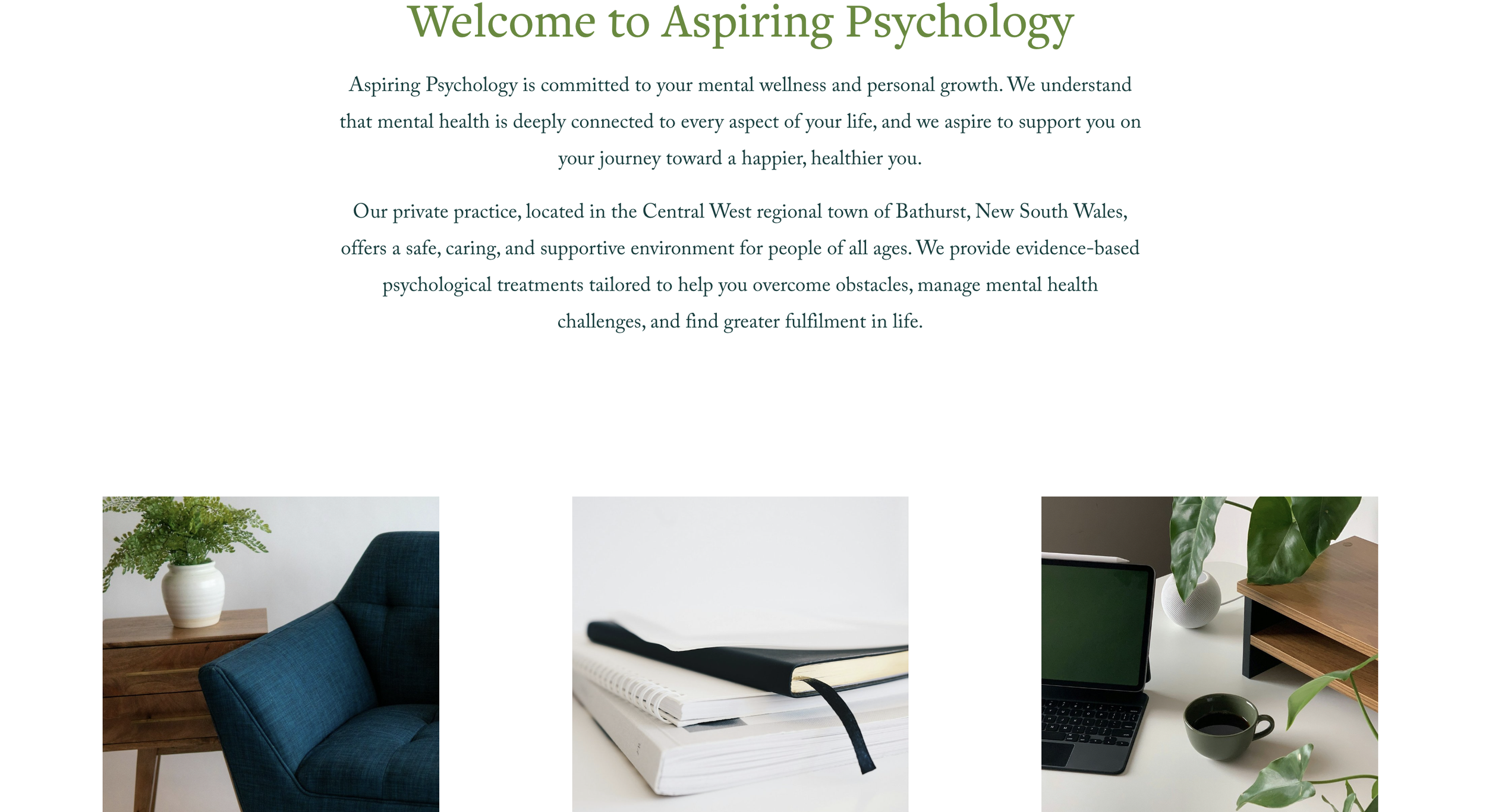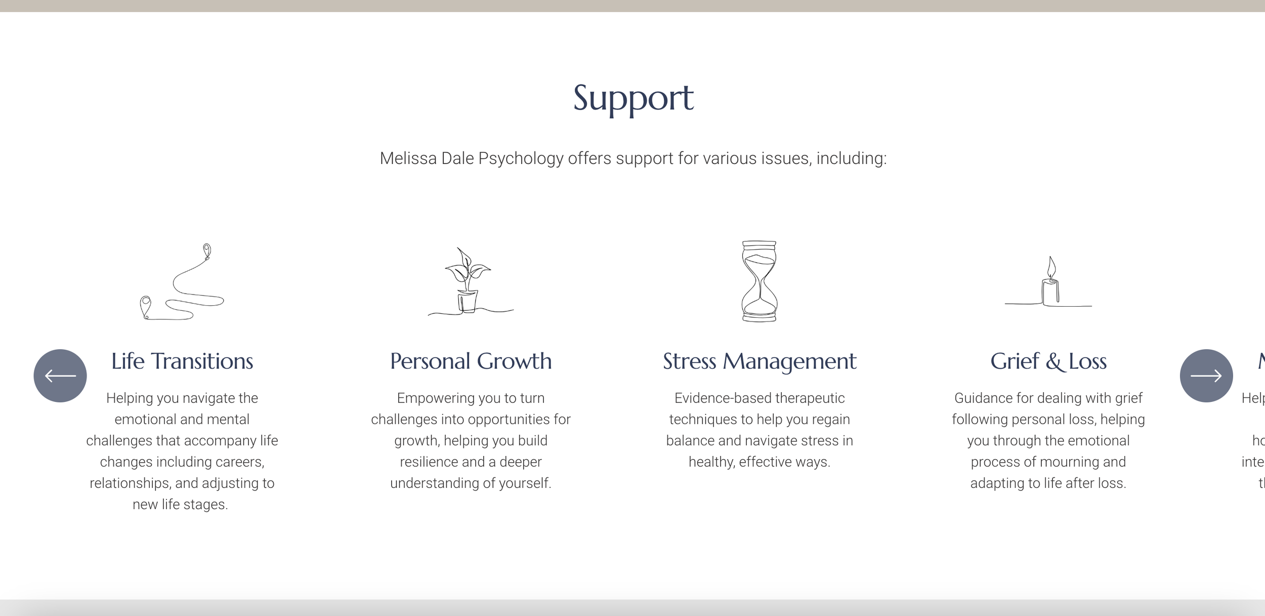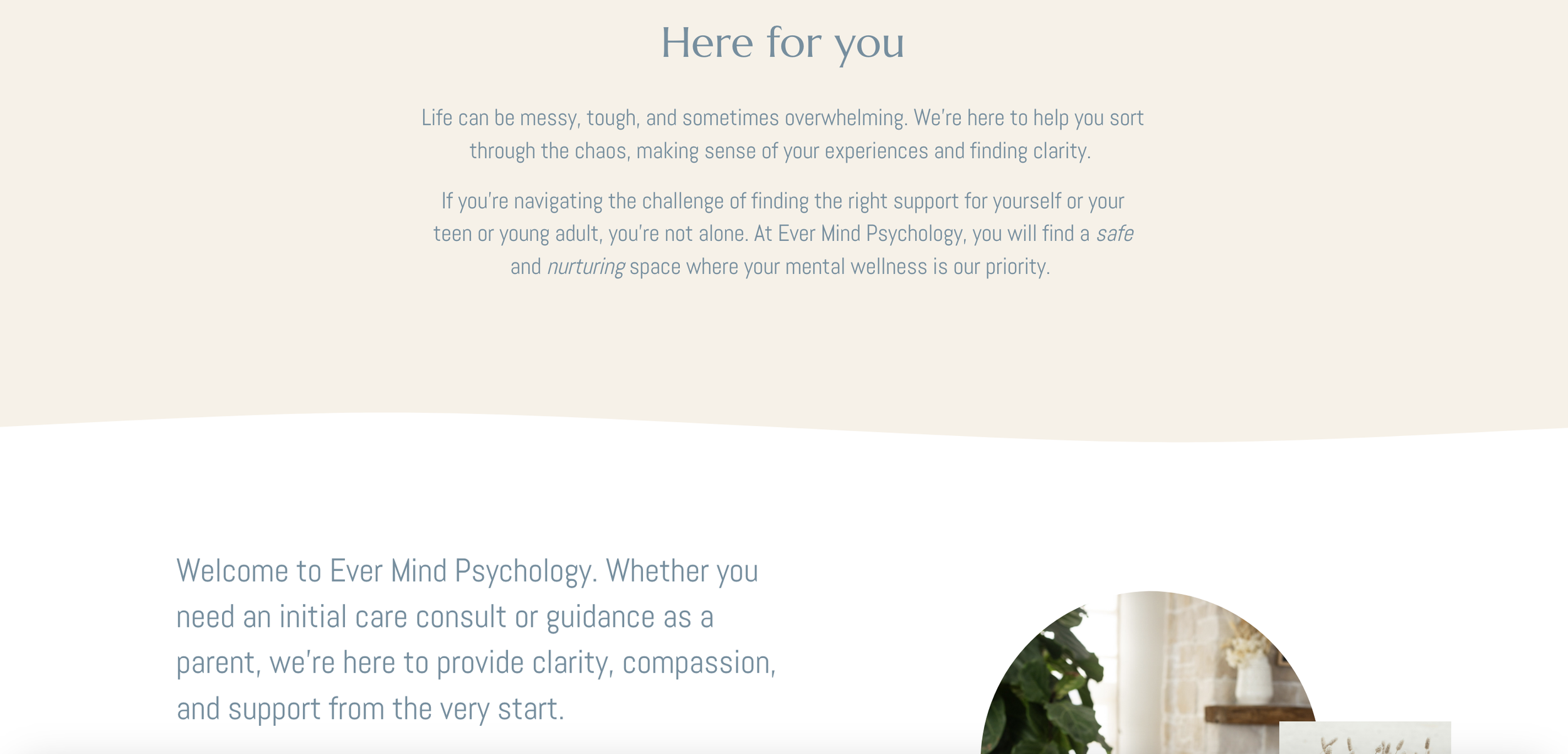 Brief: Simple, minimal, clean, and professional website reflecting clinician’s approach and style.