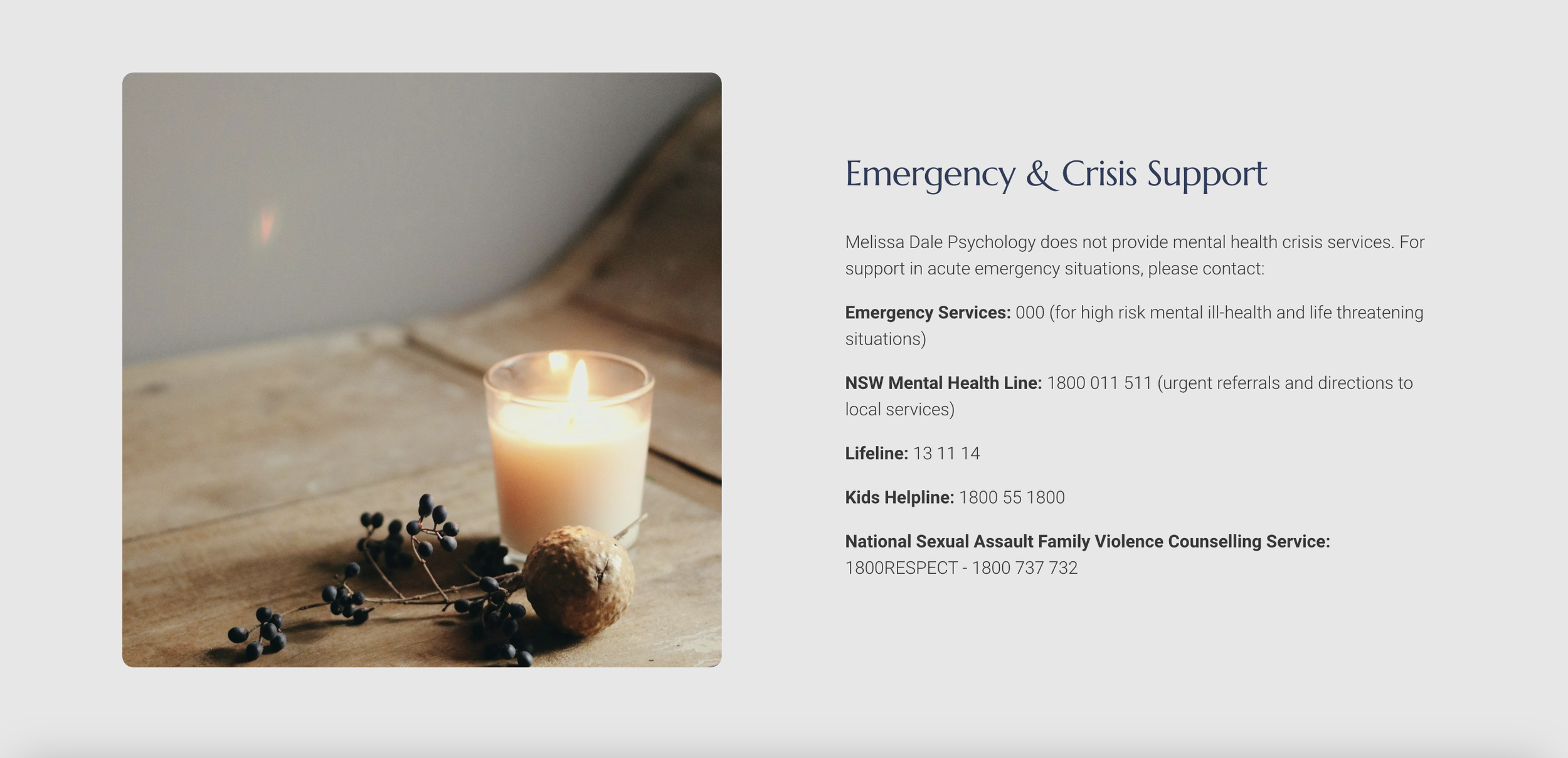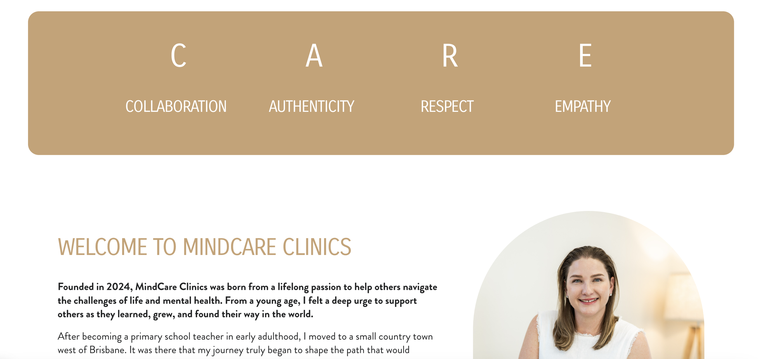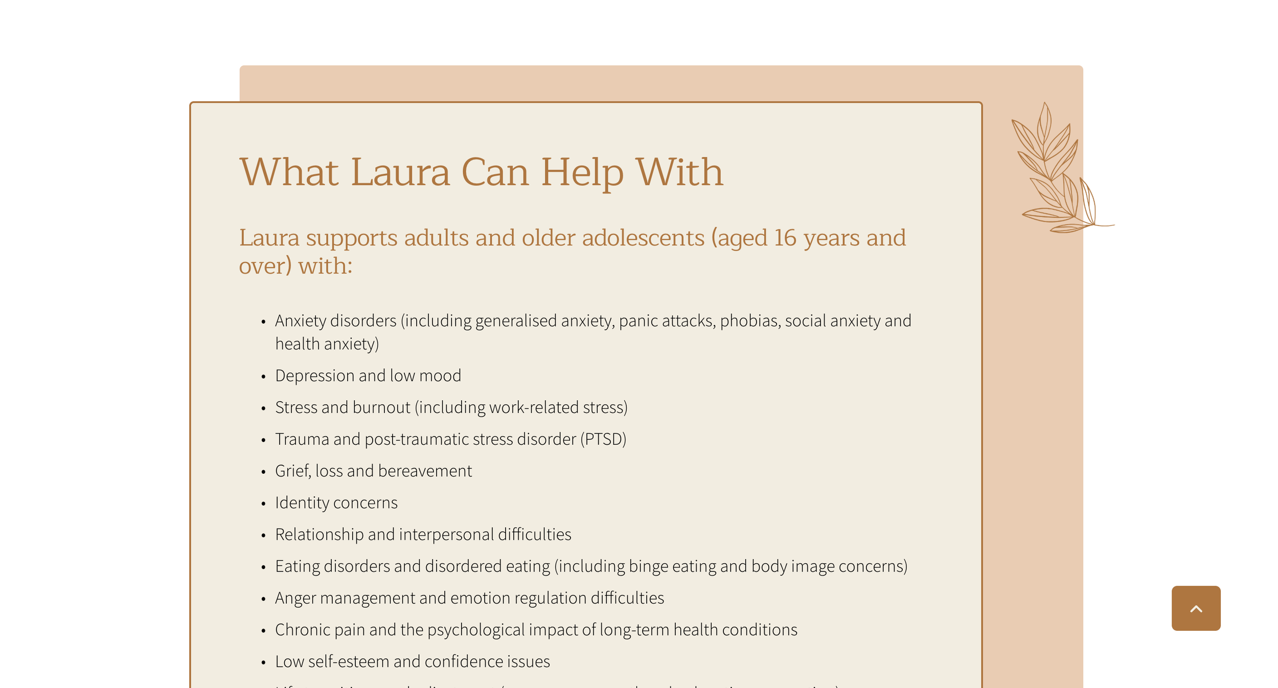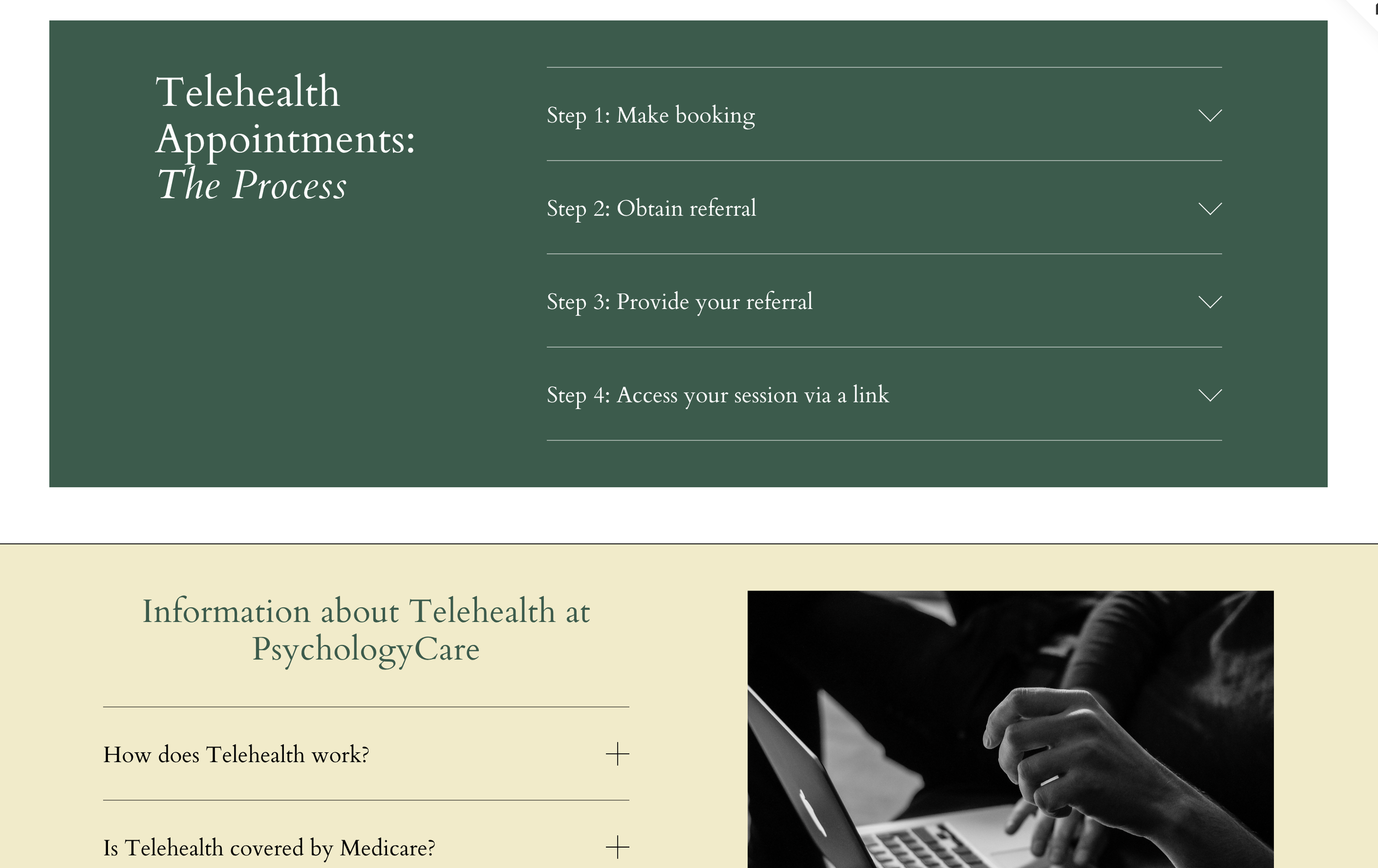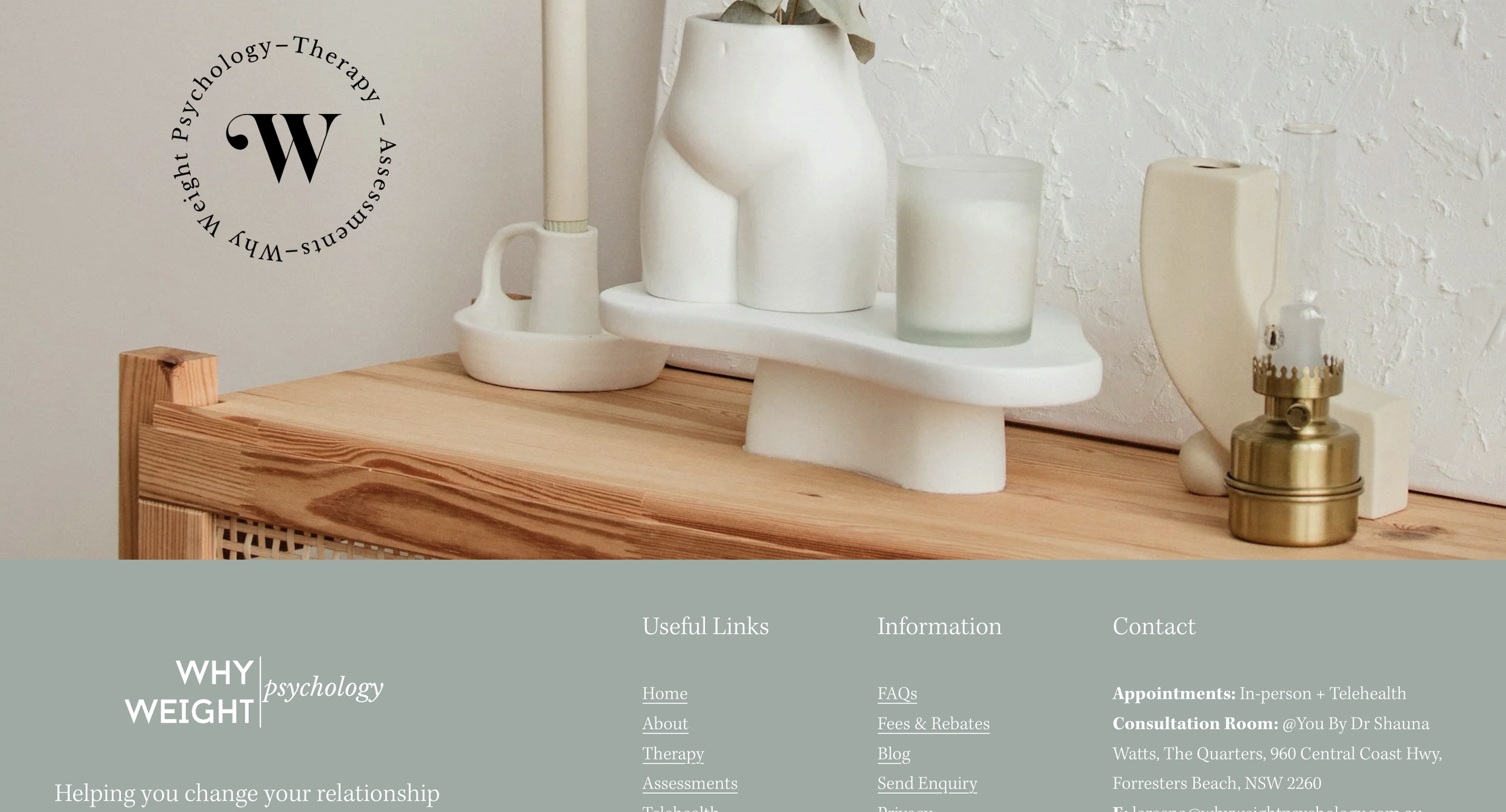 Brief: Simple, minimal, clean, and professional website reflecting clinician’s approach and style.