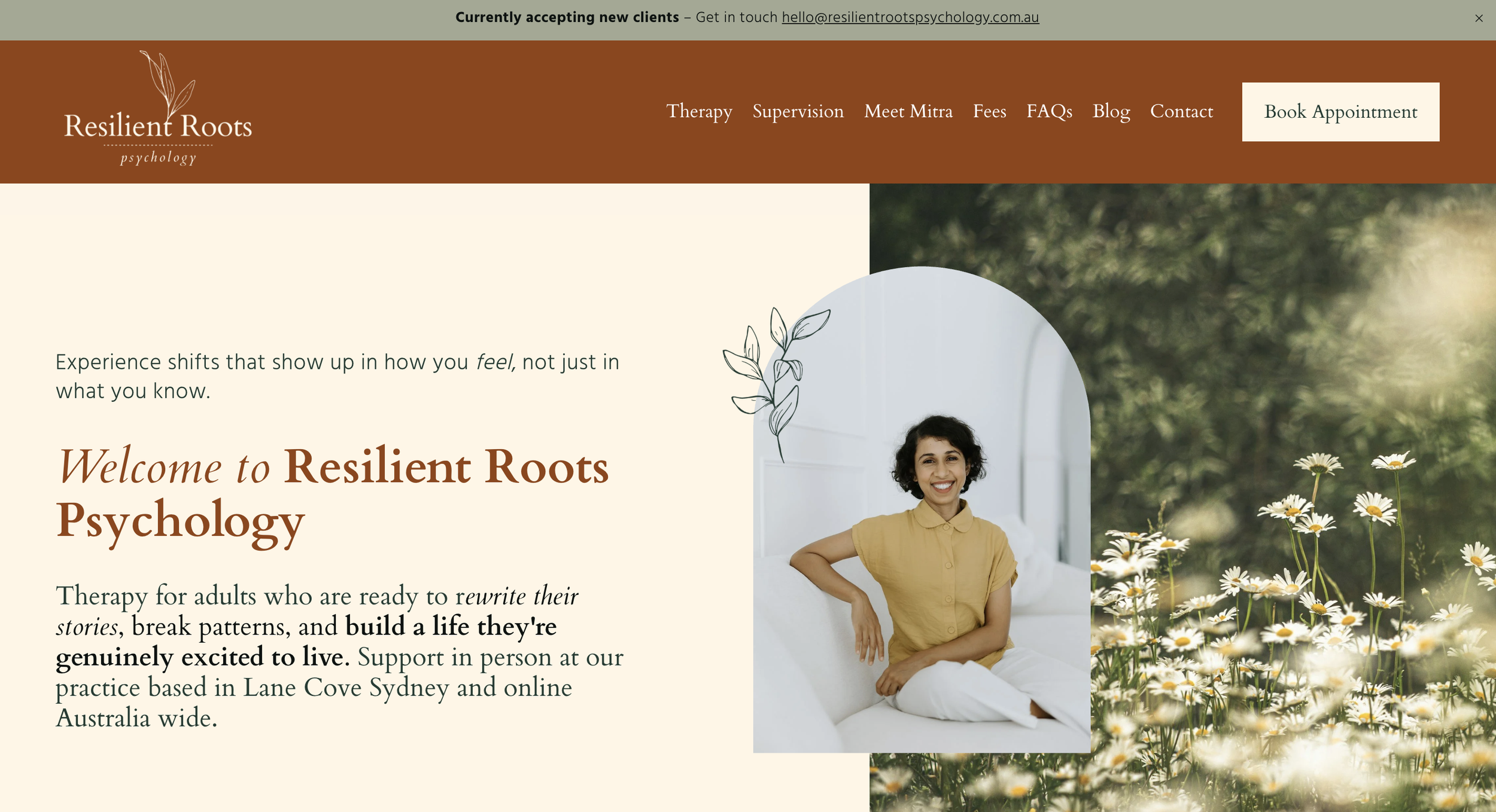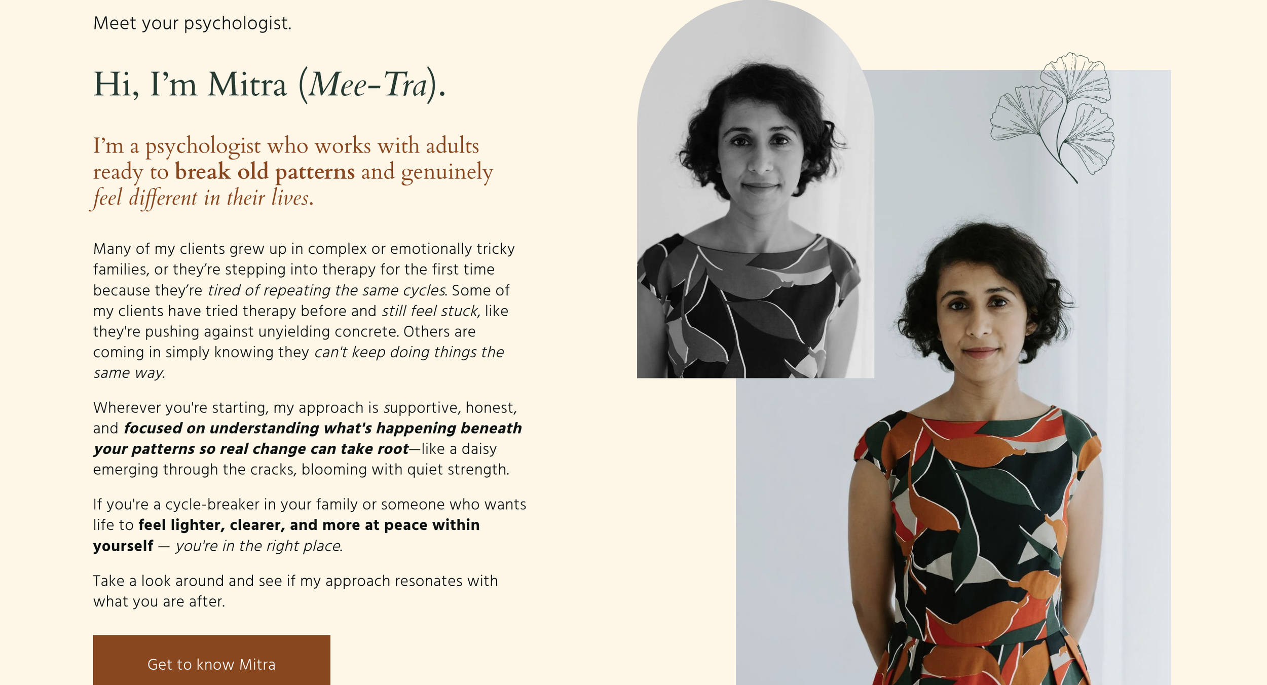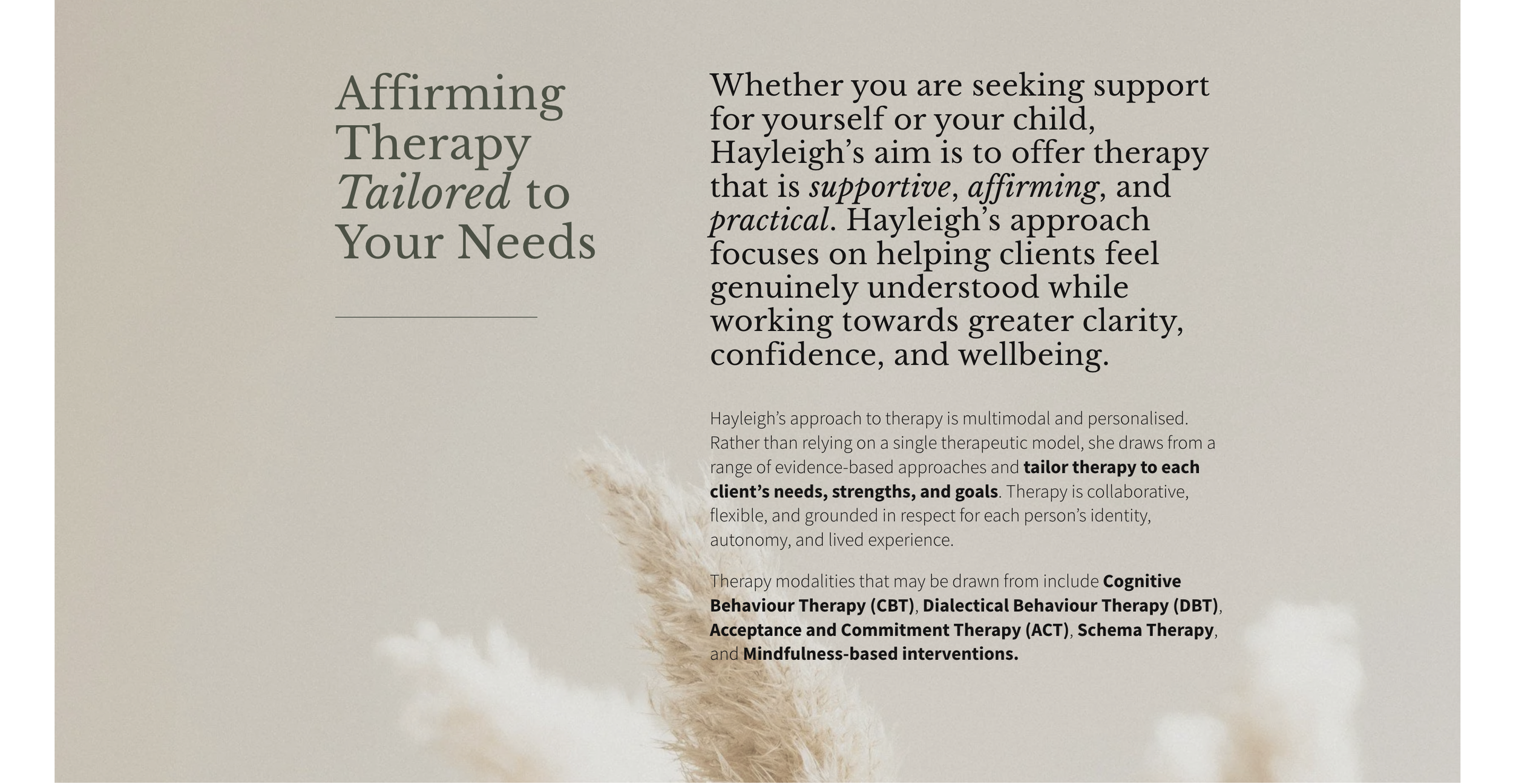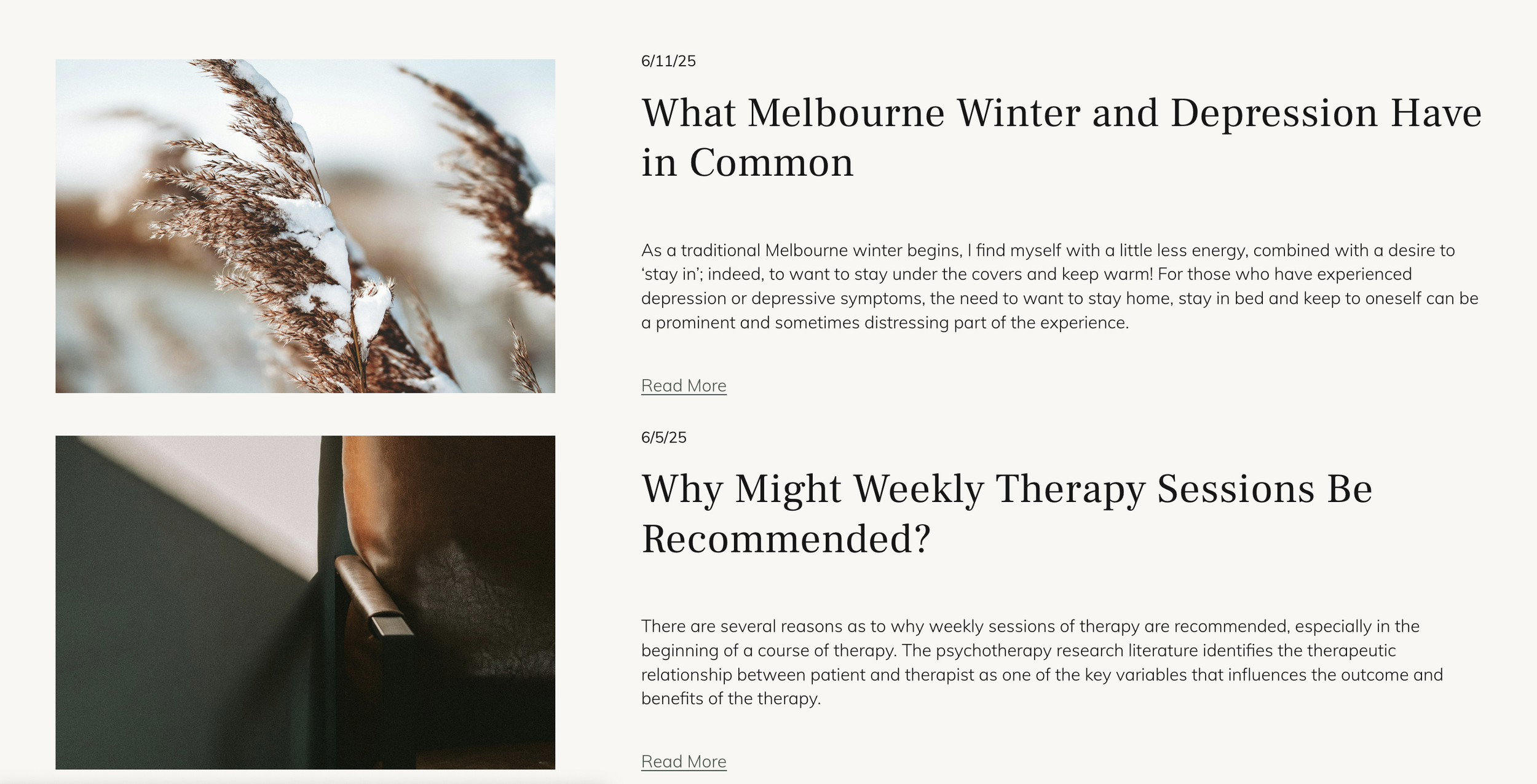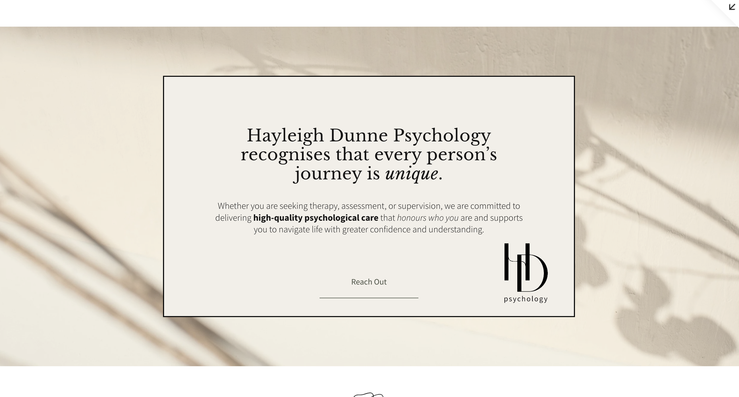 Brief: Simple, minimal, clean, and professional website reflecting clinician’s approach and style.