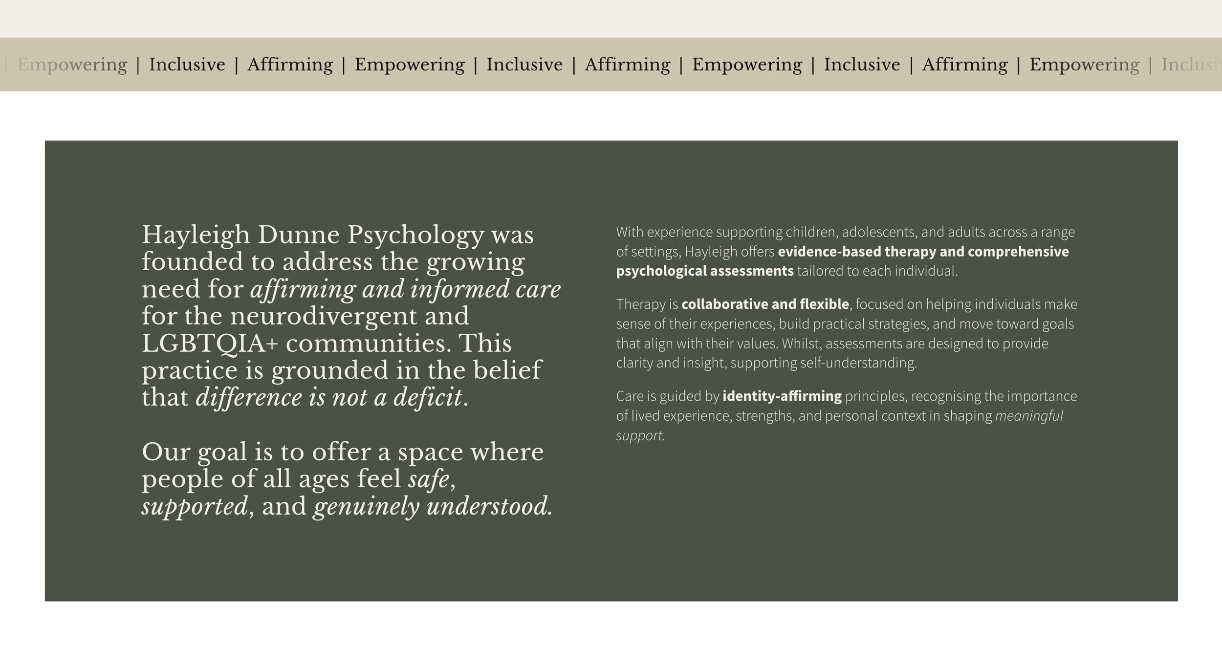 Small psychology practice offering therapy and assessments.