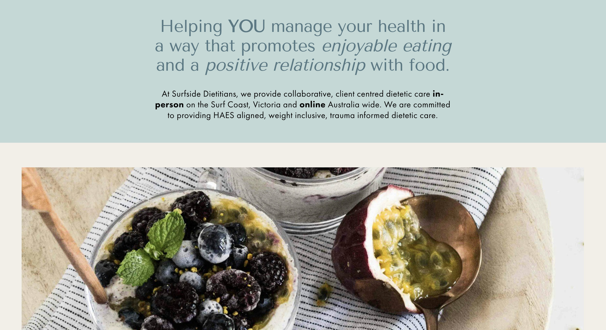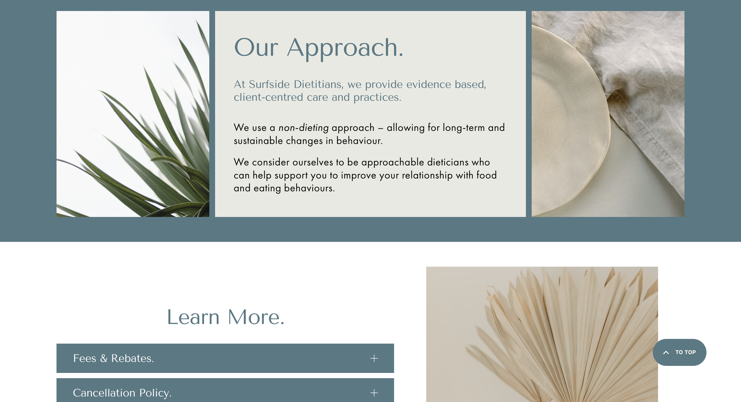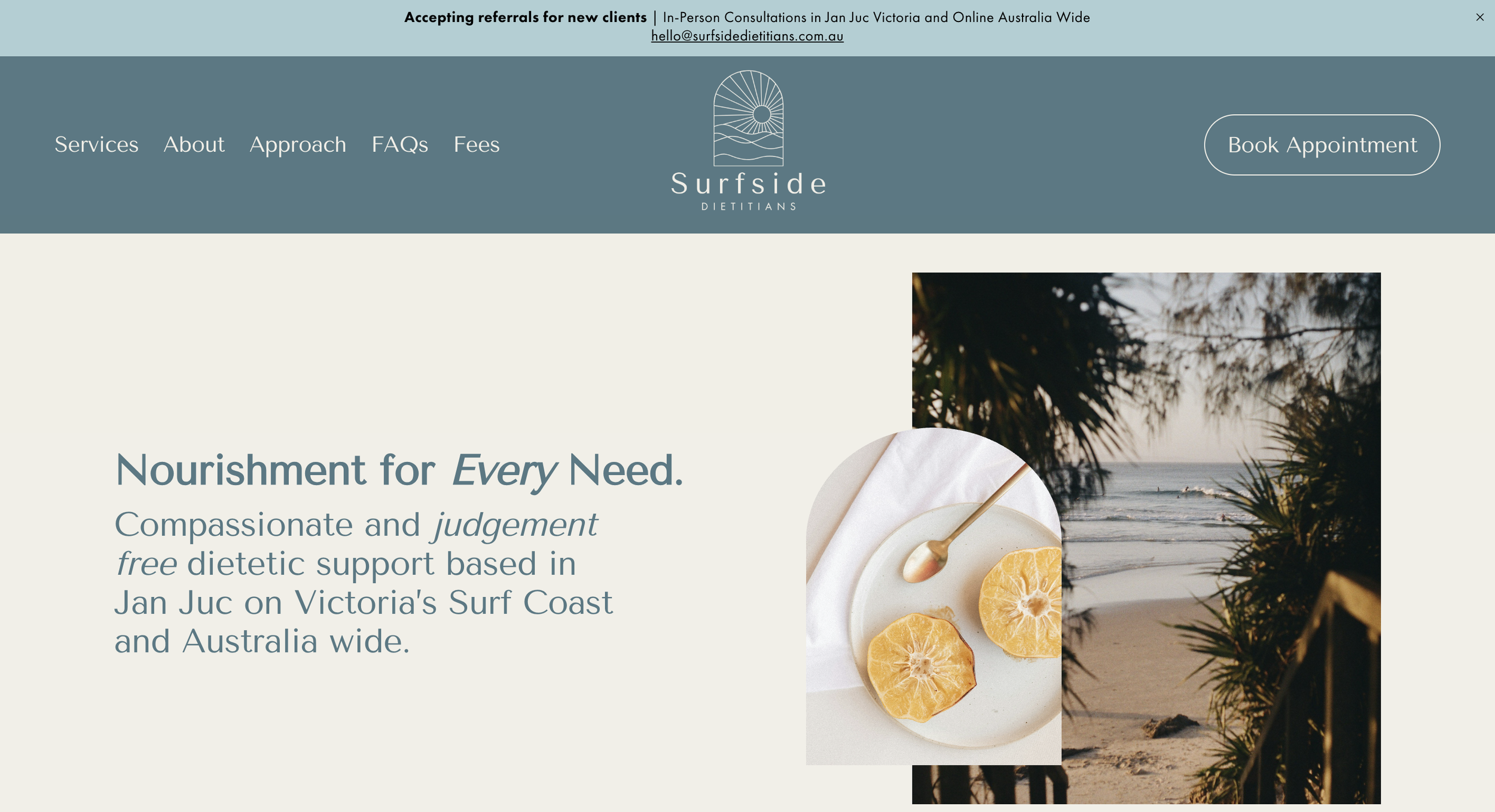 Brief: A professional website that caters to all ages and reflects multiple offerings. Coastal aesthetic using a calming palette, images, and colours.