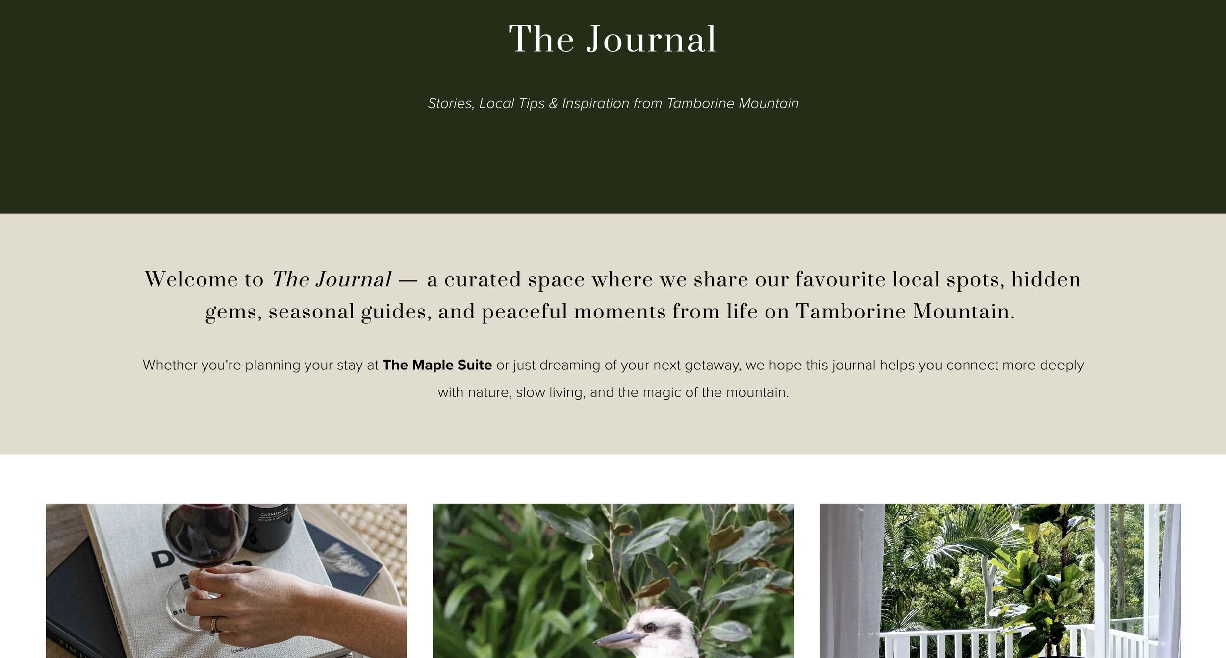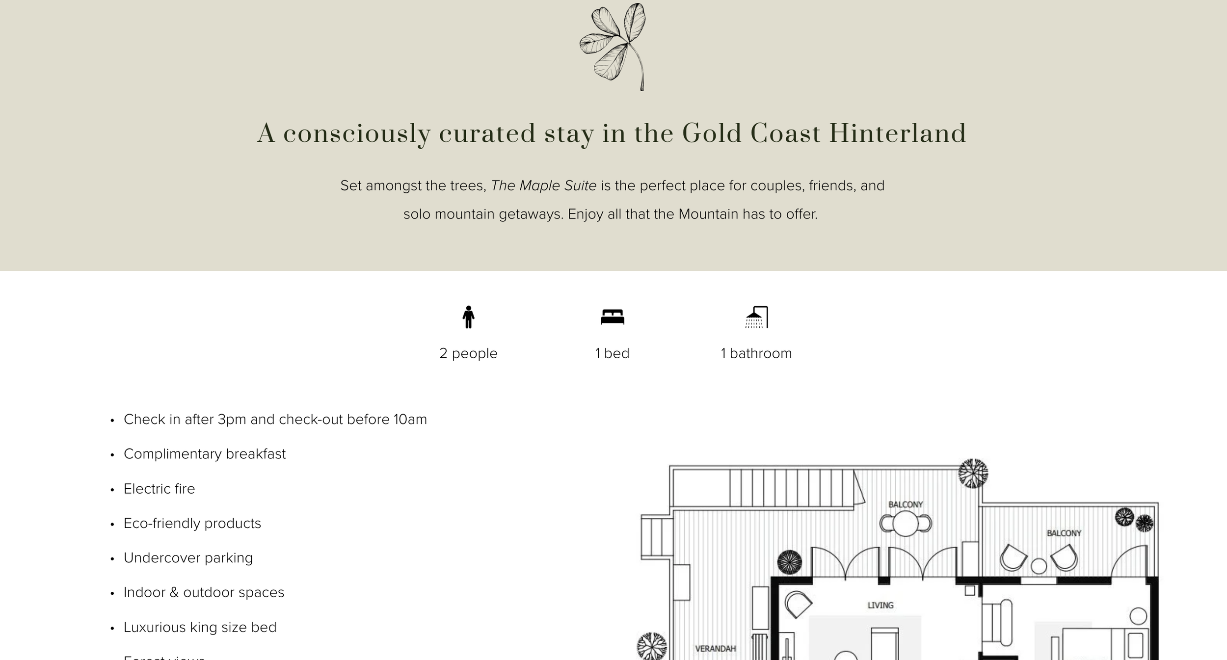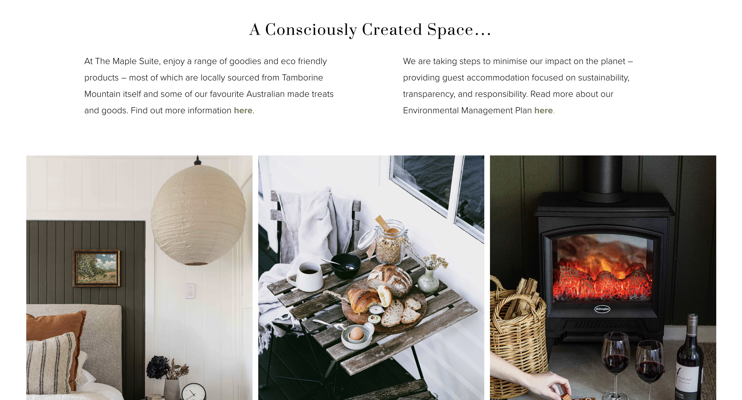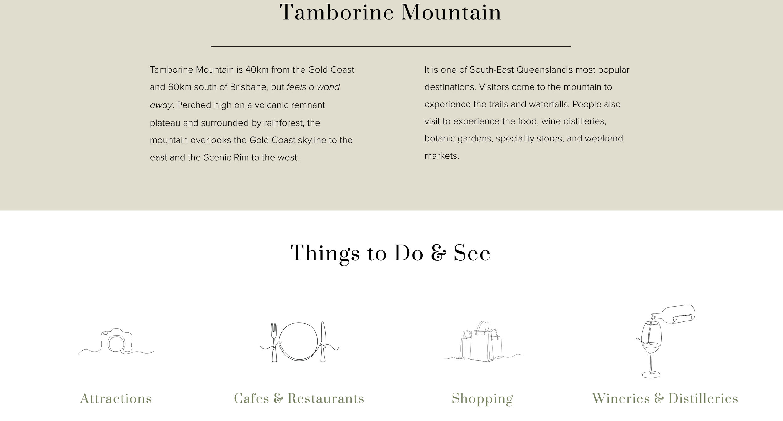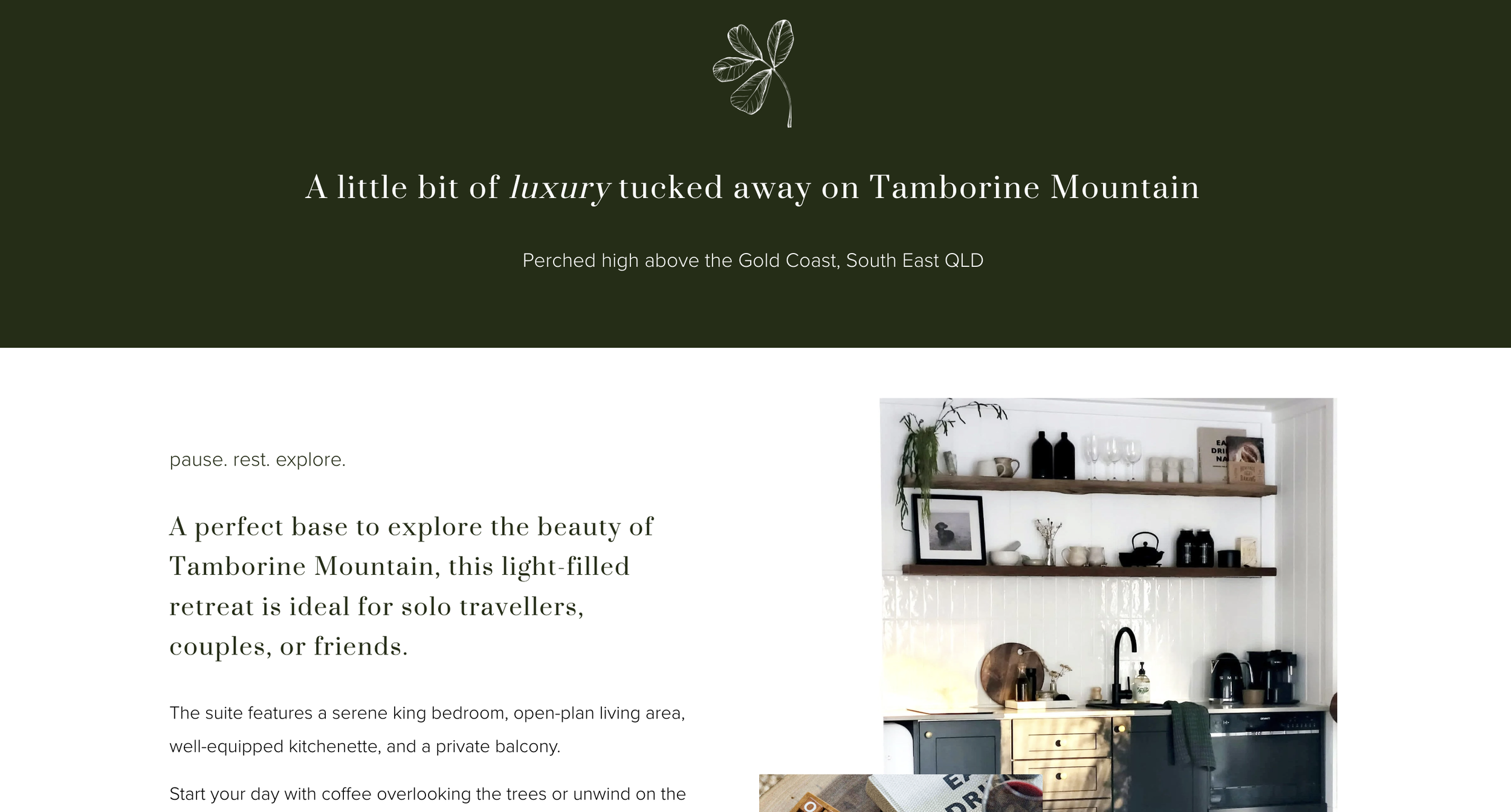Brief: A simple, beautiful, and inviting website, showcasing the short term rental. Using a natural colour palette to reflect it’s mountain location.