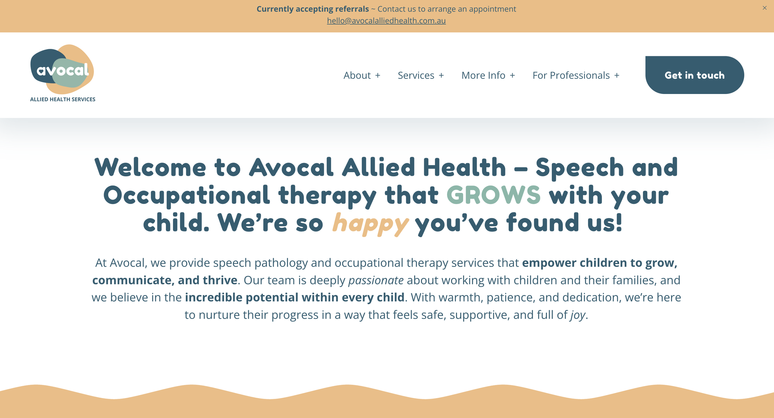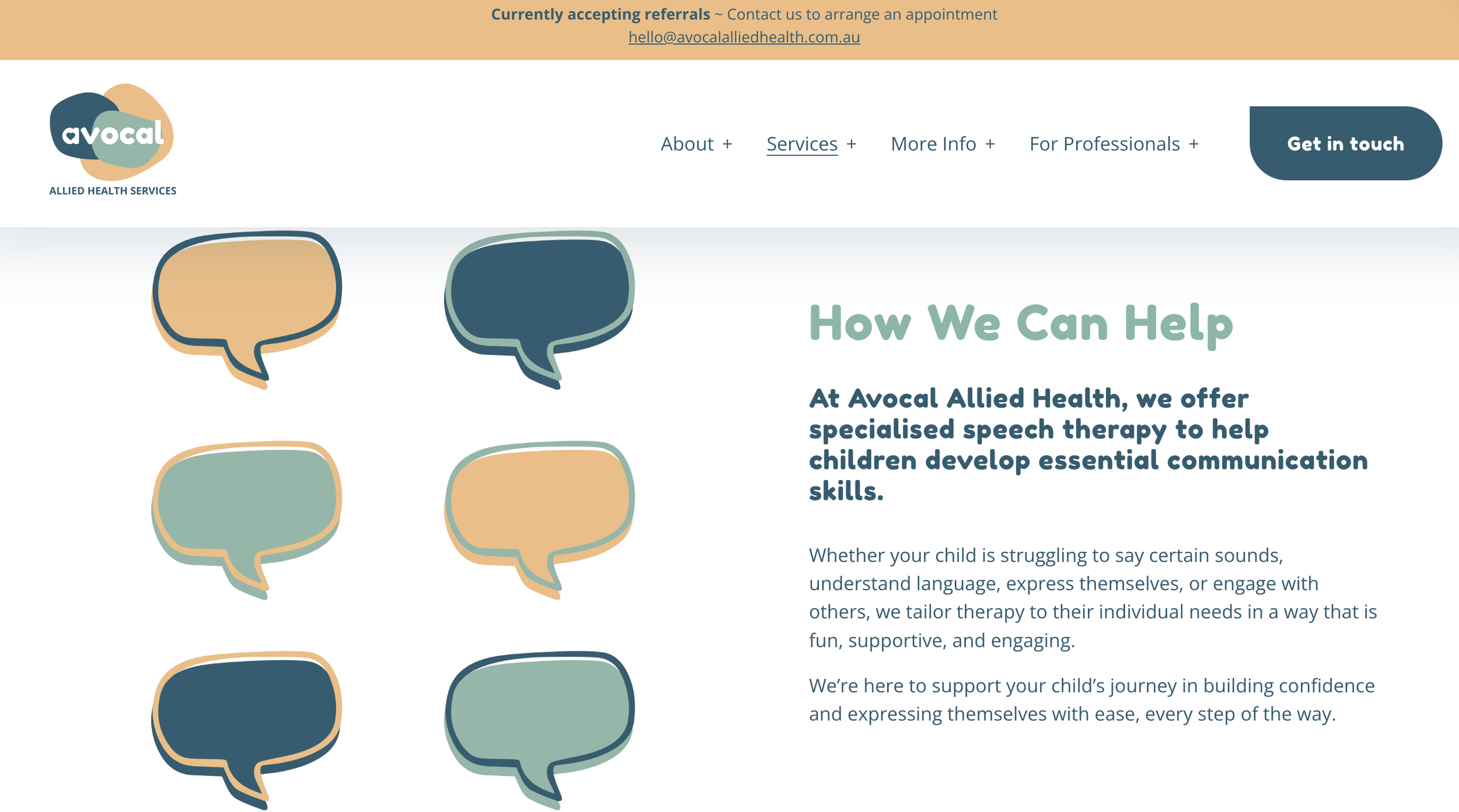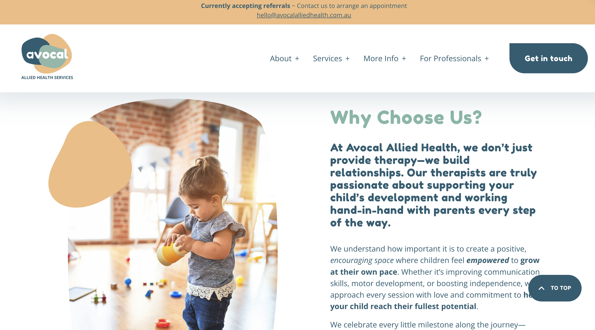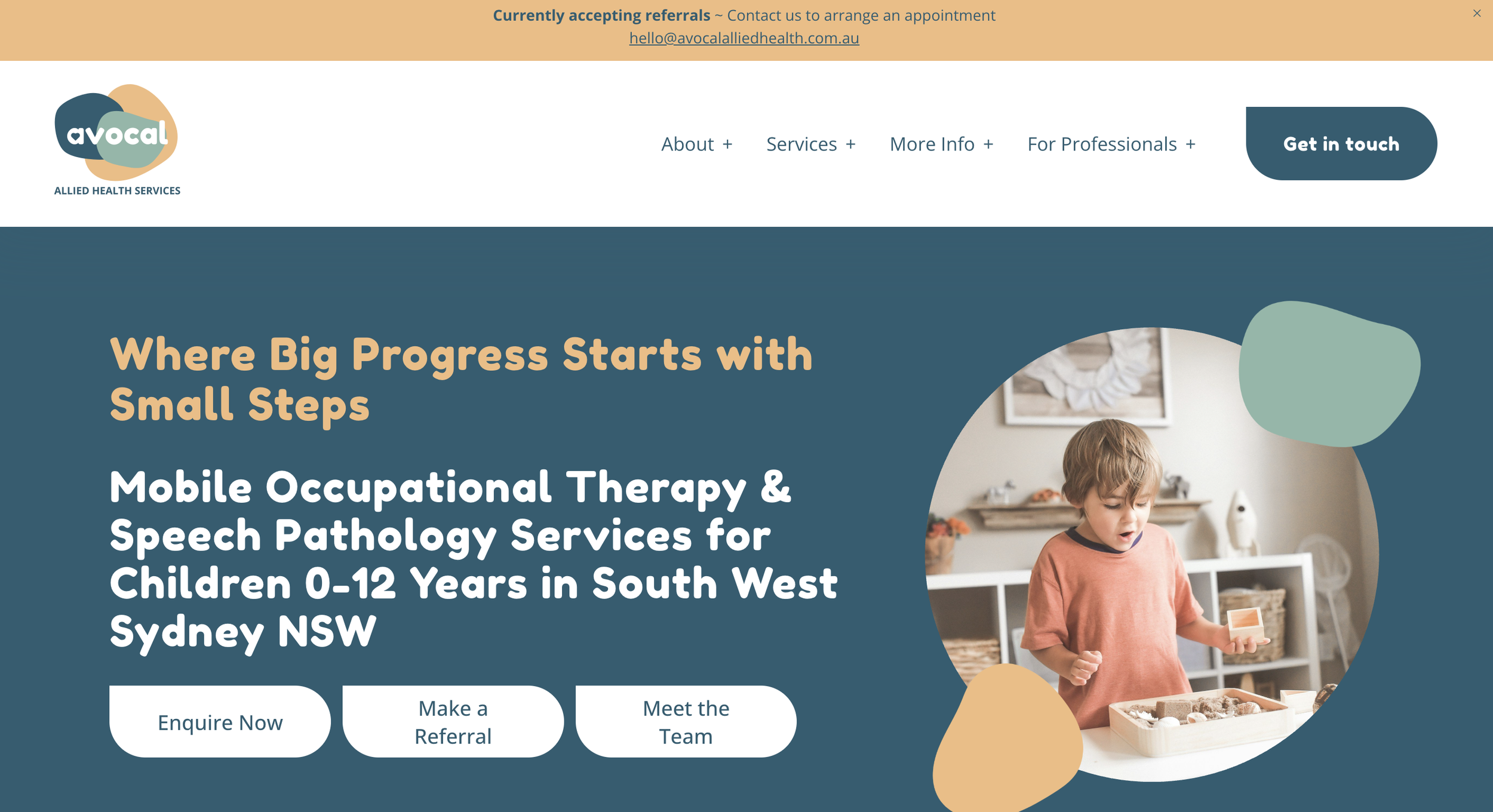 Mobile allied health service offering speech pathology and occupational therapy services to children, their parents, and their families.