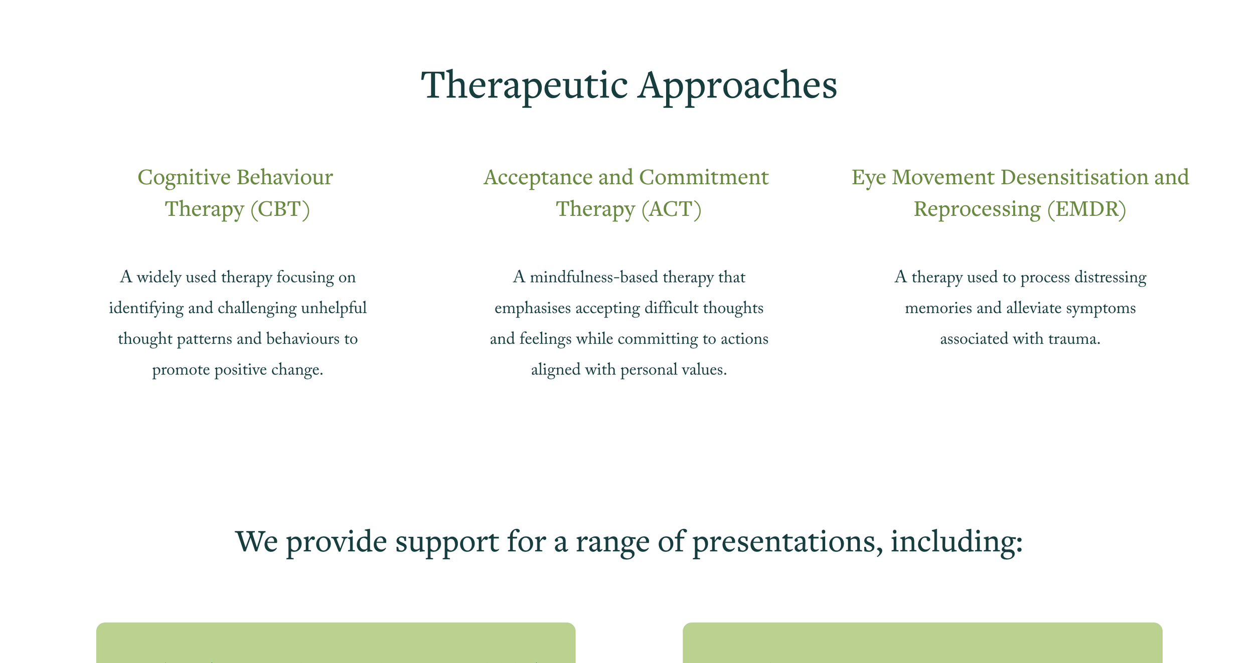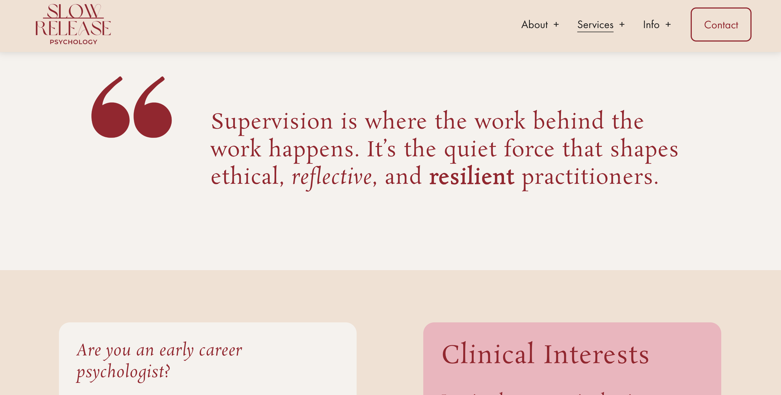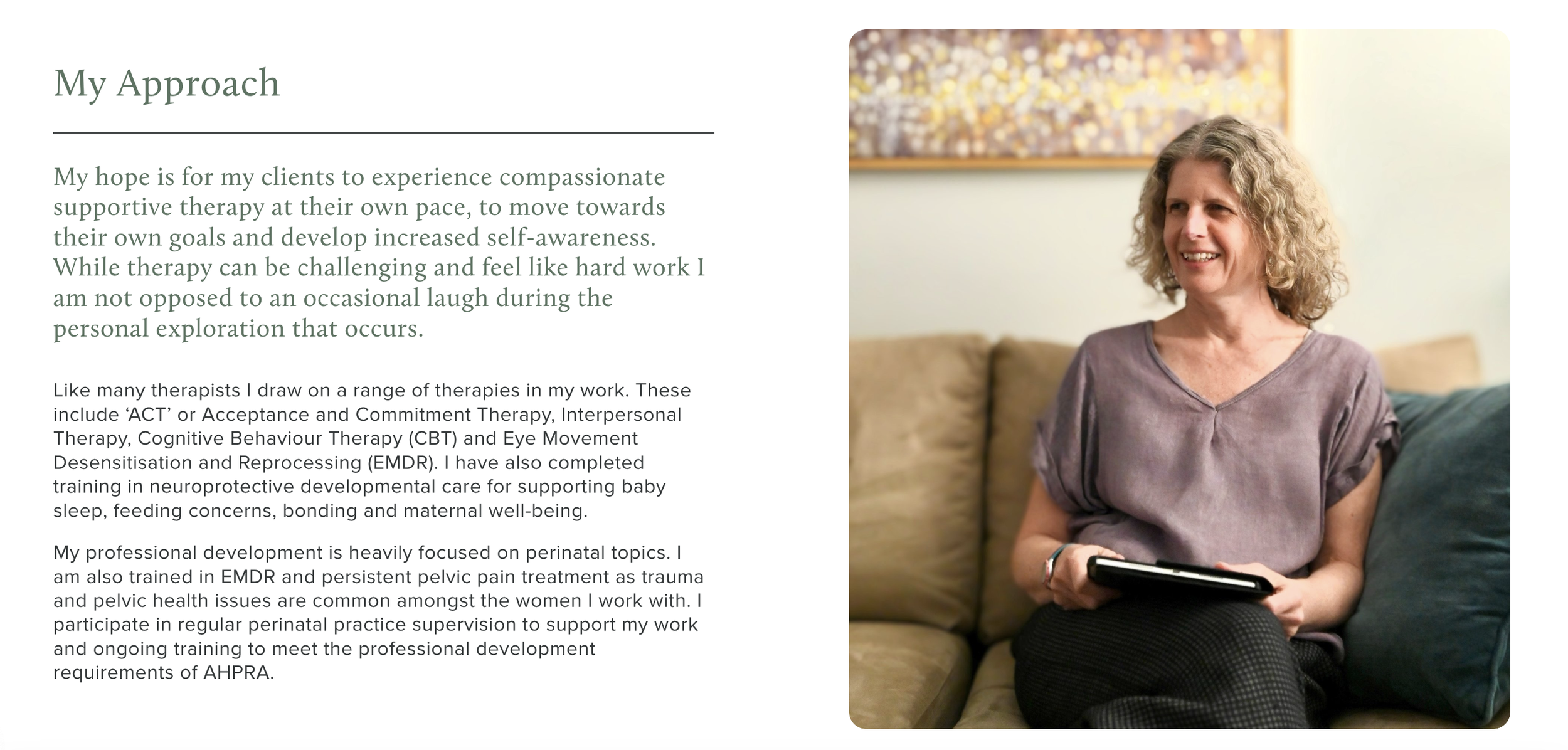Small Private Psychology Practice offering therapy, with a focus on EMDR for trauma and supporting mothers in the perinatal and postnatal period. Showcase individual and group supervision services, including a supervision masterclass.