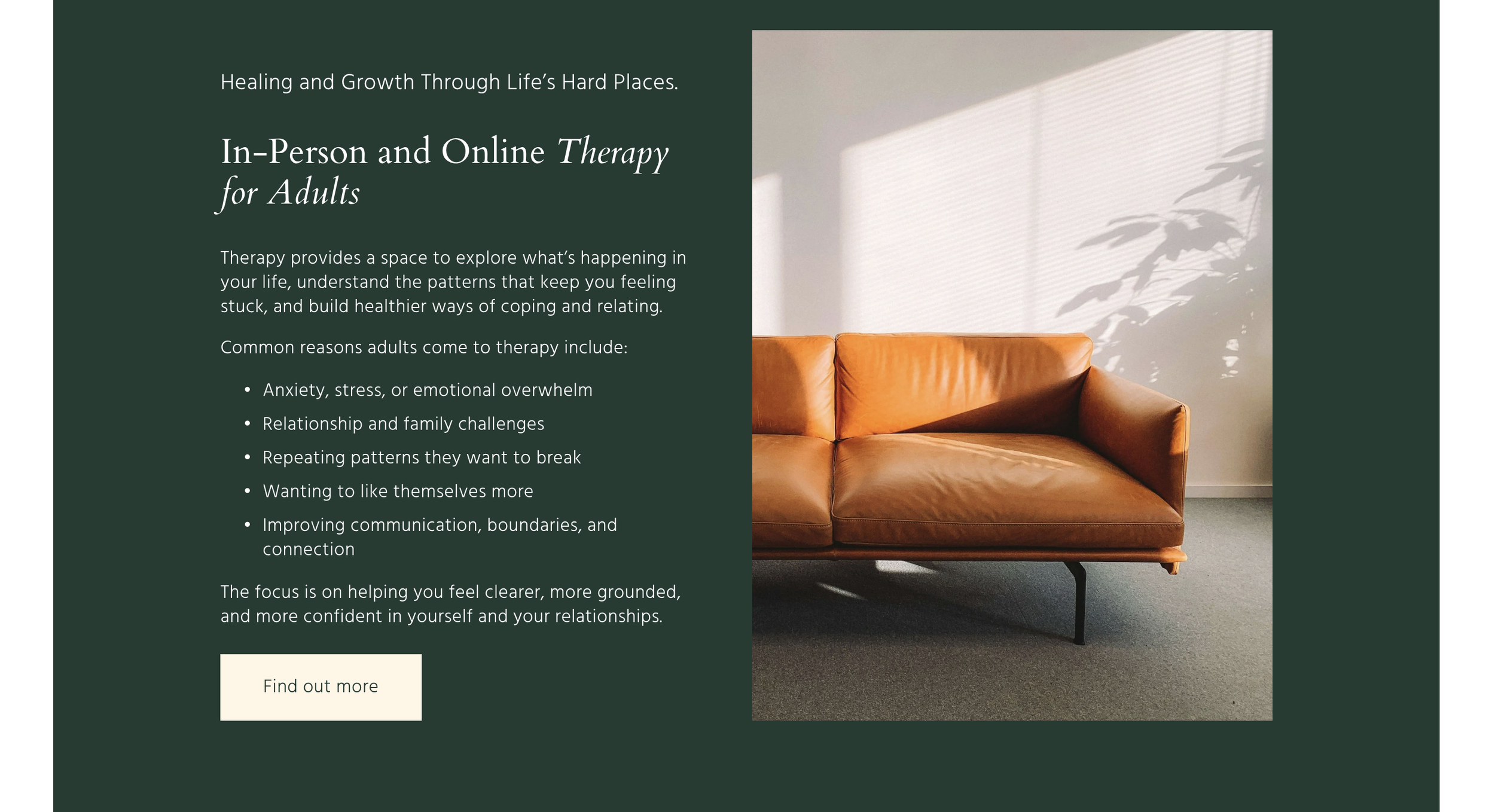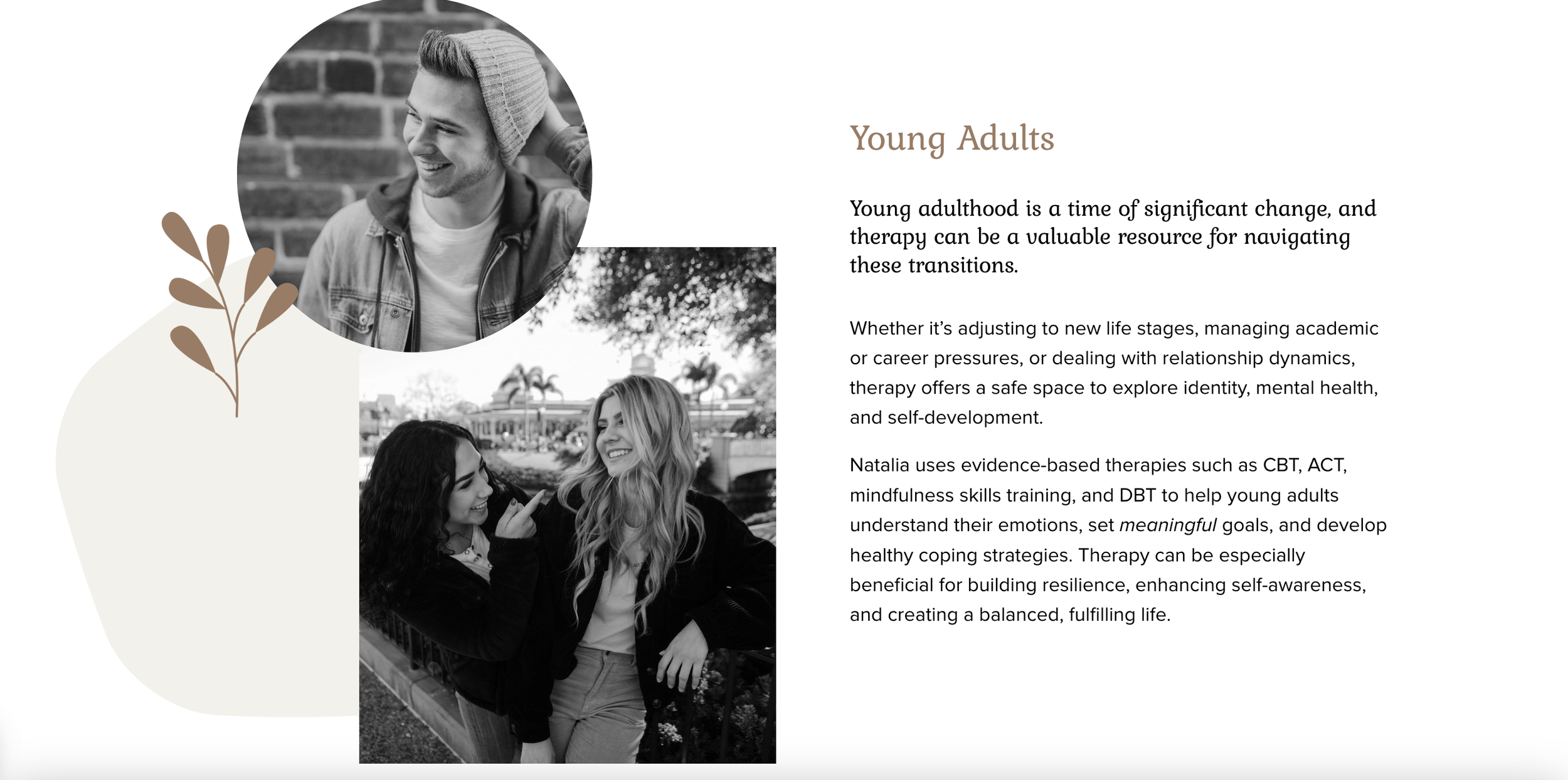 Small private psychology practice offering therapy for adolescents, adults, parents, and couples.
