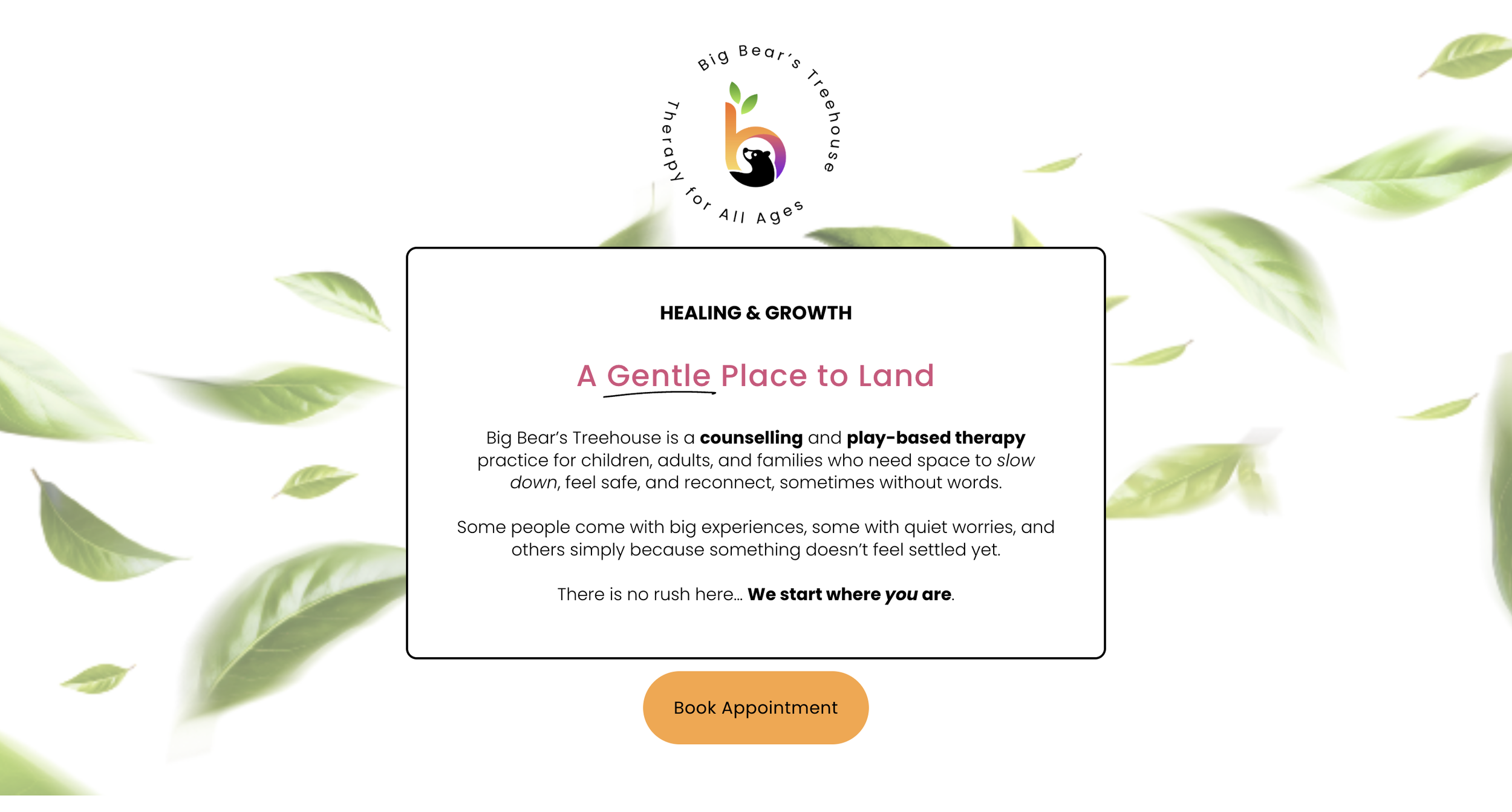 A counselling service offering trauma-informed therapy for children, adolescents and adults, in clinic and outreach.