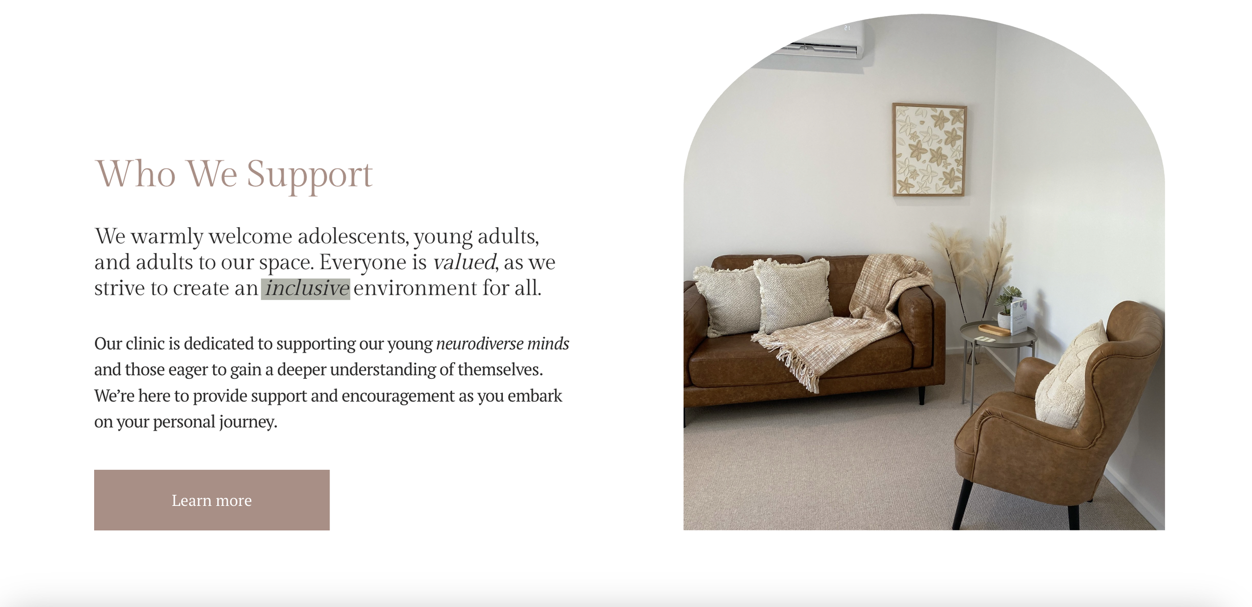Small psychology practice offering therapy and assessments to children, adolescents, young adults, and parents - with a focus on Neurodiversity.