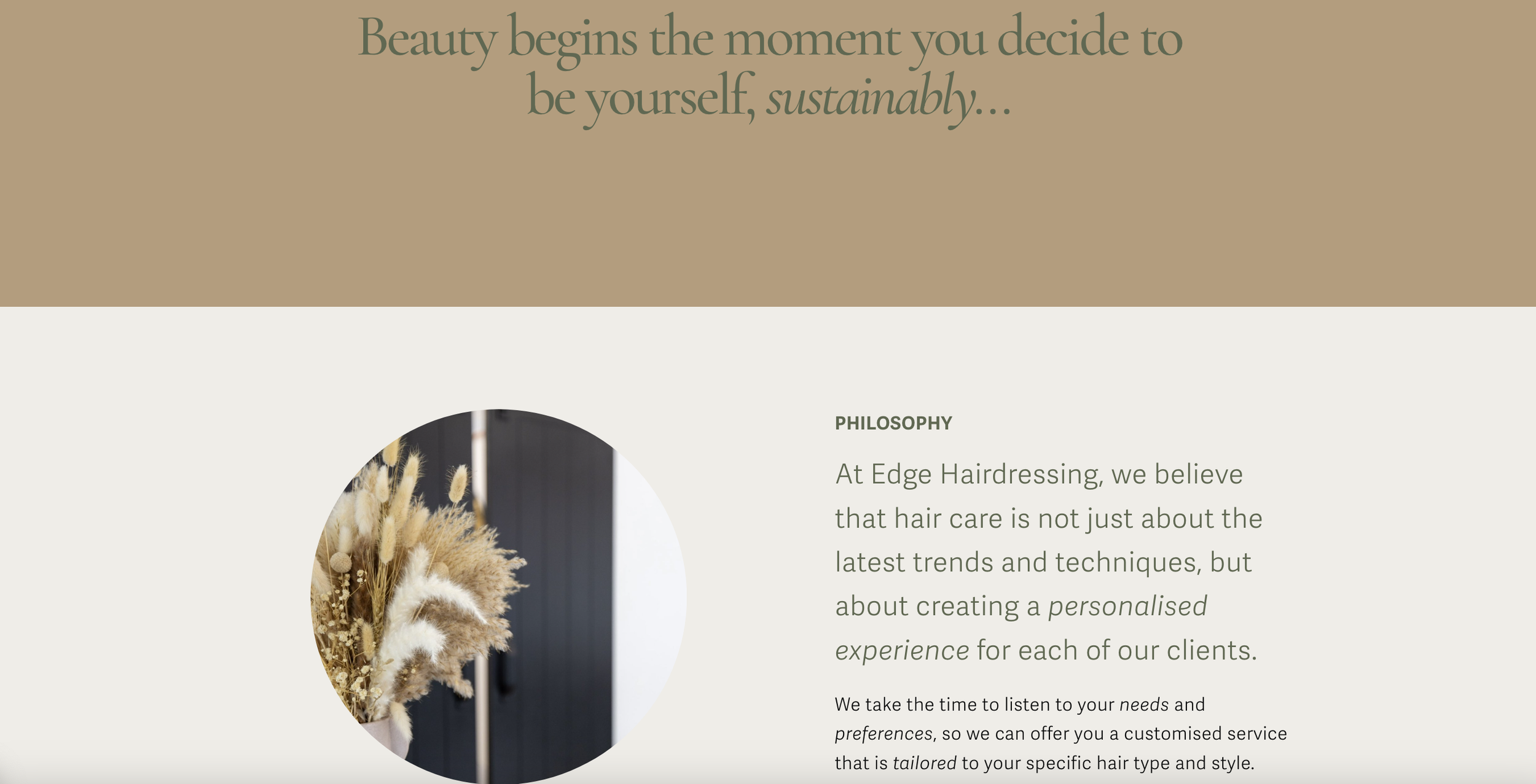 Brief: A fresh website reflecting the salon’s colours and sustainable approach.