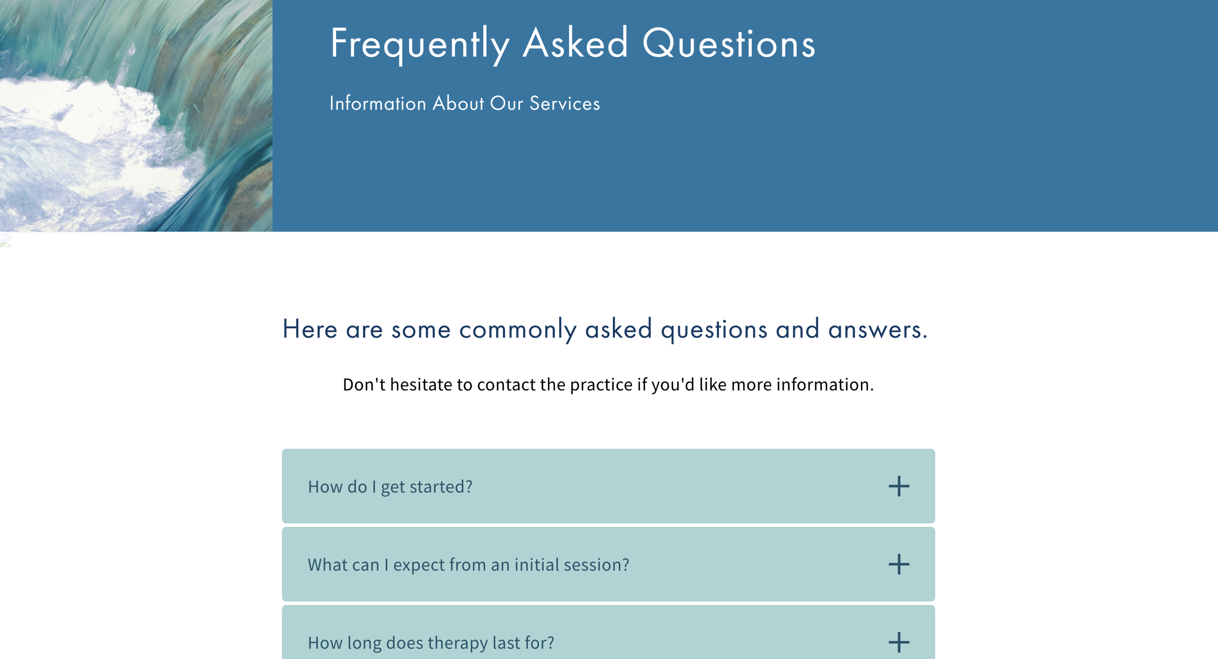 Brief: Create a professional, calm, and coastal inspired website, including blues and pink, to reflect the practice’s niche areas.