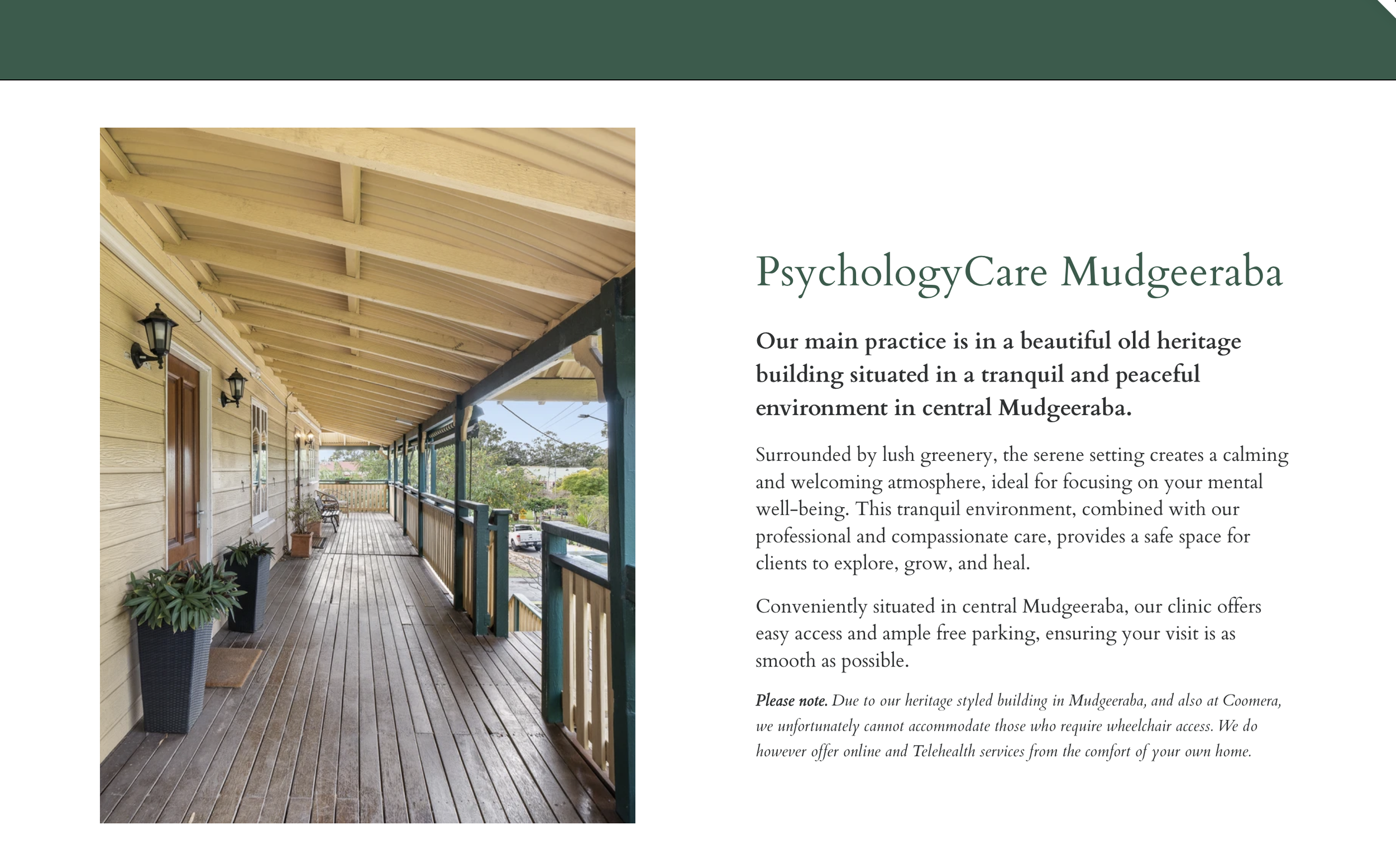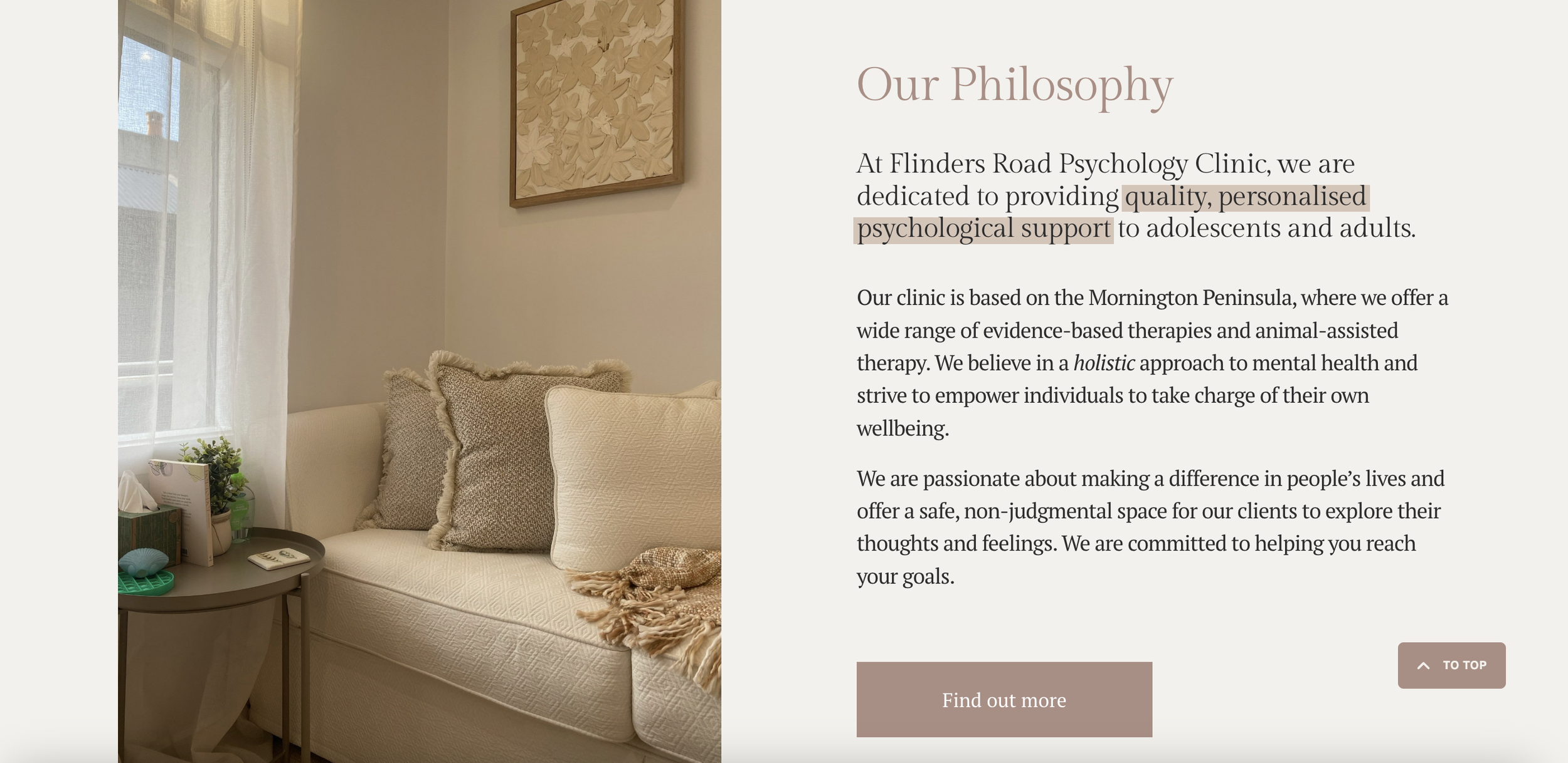 Boutique Psychology practice providing therapy to adults and offering clinic room rental to other practitioners.