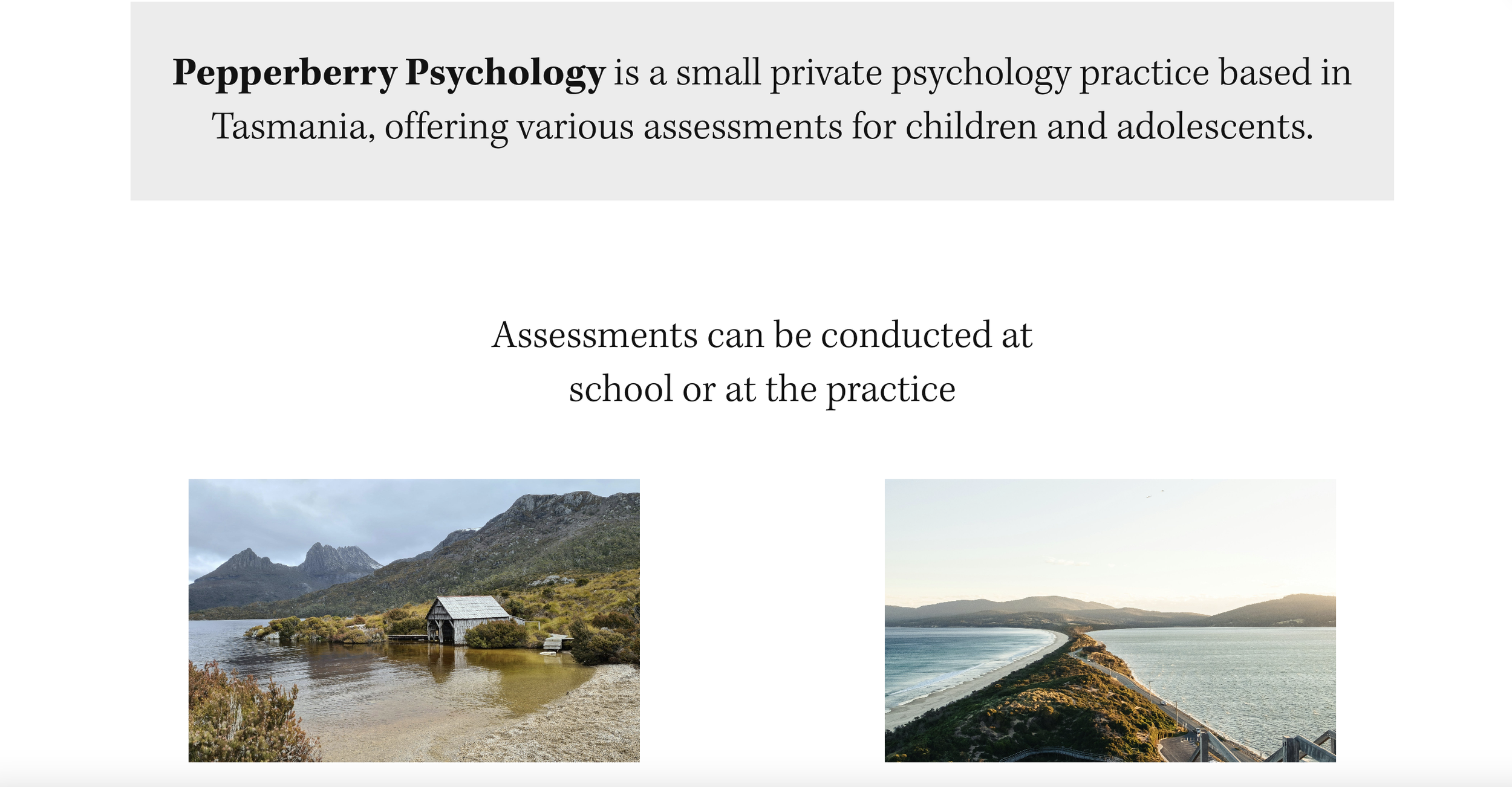 Small Private Psychology Practice based in Tasmania offering assessments for children and adolescents.