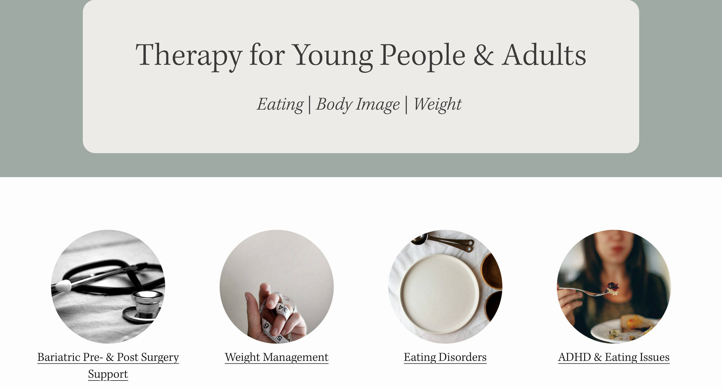 Small Private Psychology Practice offering therapy and assessments for adults for eating, food, and body related issues.
