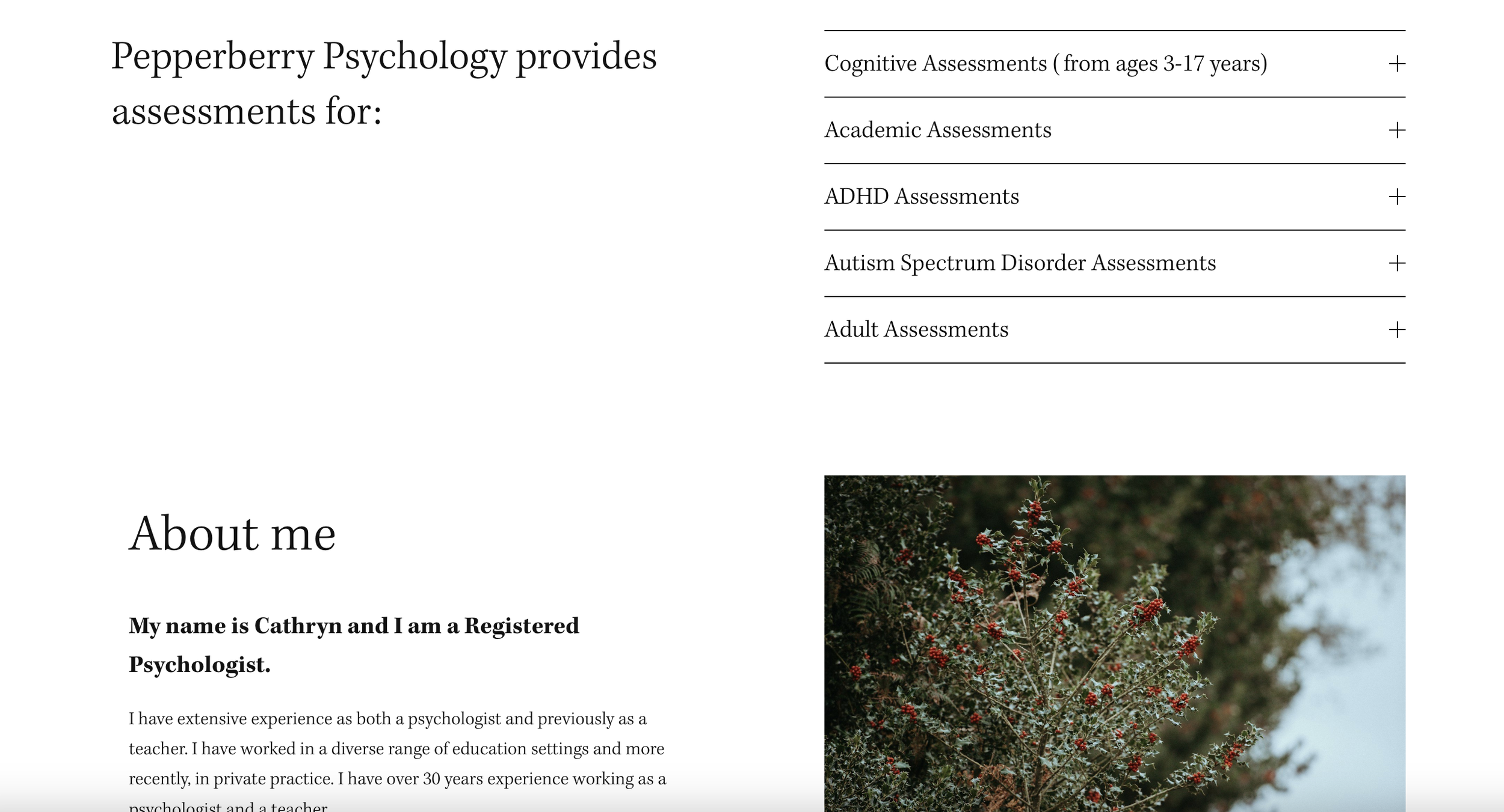 Brief: A simple and minimalist website. Incorporating images inspired by the Pepperberry tree.